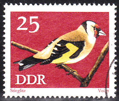 Auch in der DDR ist eine Marke (MiNr 1838) mit einem Stieglitz (Carduelis carduelis) erschienen.