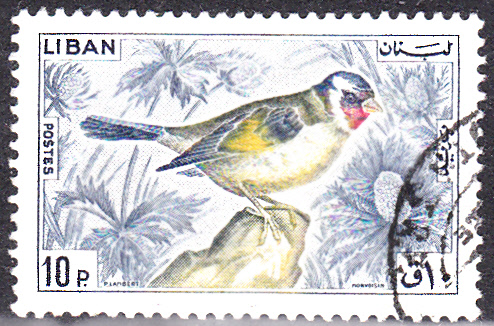 Auch auf dieser Marke aus dem Libanon (MiNr 895) ist ein Stieglitz (Carduelis carduelis) zu sehen.