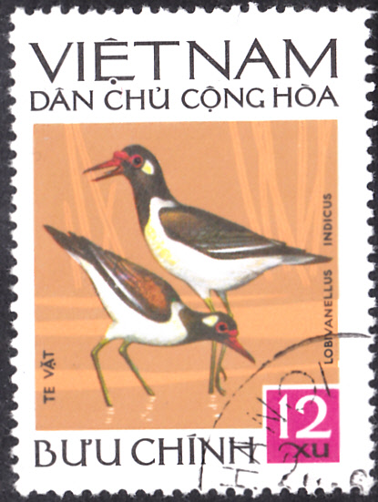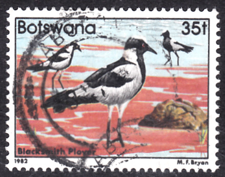 Auf dieser Marke aus Botswana (MiNr 312) sind Waffenkiebitze (Vanellus armatus) zu sehen. Im Michel wird er Schmiedekiebitz (Hoplopterus armatus) genannt.
