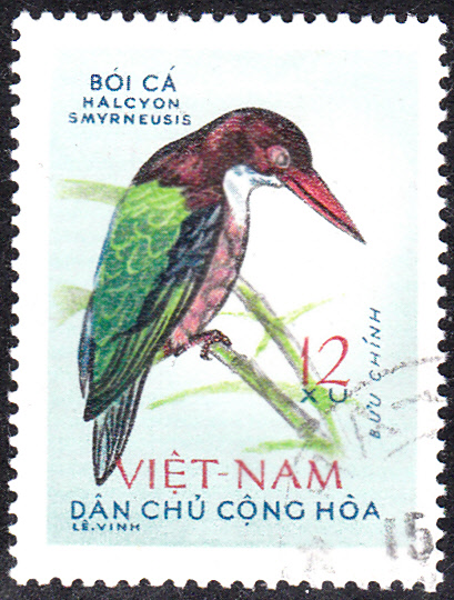 Diese Marke aus Vietnam (MiNr 277) zeigt noch einen Braunliest (Halcyon smyrnensis).