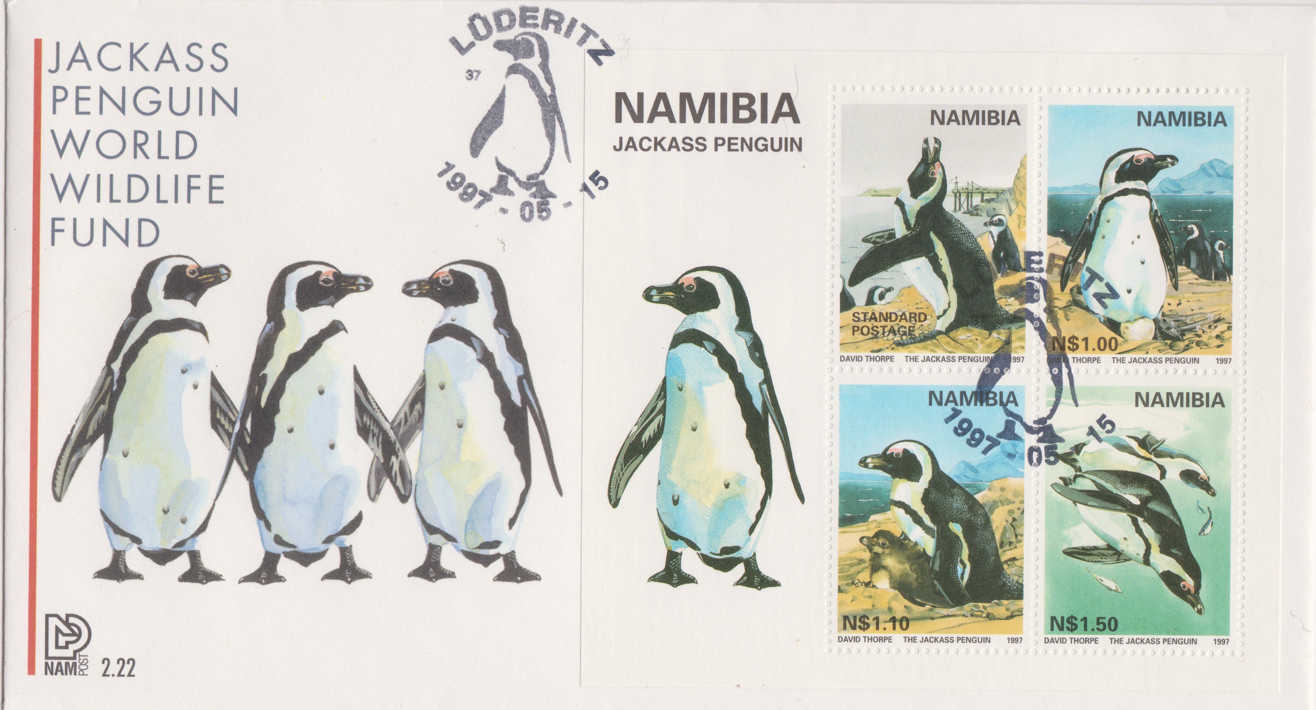 Ministerkarte des Bundesministers für Finanzen mit zwei Marken Umweltschutz: Antarktis (MiNr 3689) mit einem Kaiserpinguin (Aptenodytes forsteri) und den beiden Ersttagsonderstempel Bonn und Berlin.