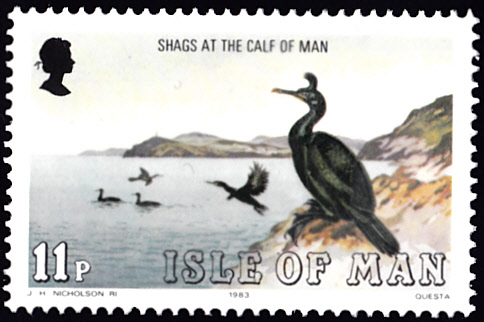 Auf der Insel Man ist eine Marke (MiNr 225) mit Krähenscharben (Phalacrocorax aristotelis) auf der Insel Calf of Man erschienen.