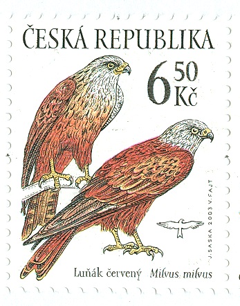 Die Post der tschechischen Republik gab dieses Markenheftchen heraus, eines einer Kleinserie von 3 Markenheftchen mit Greifvogelmotiven, in dem sich 5 Werte zu 6 Kronen 50 (Heller) mit diesem Rotmilan-Motiv befinden.