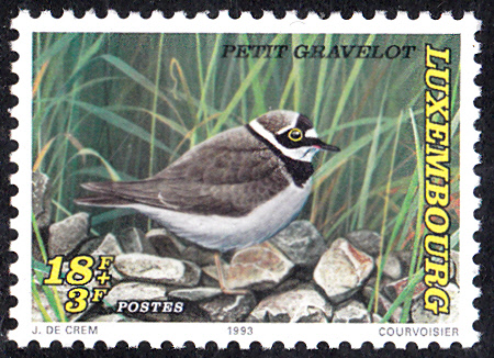 Hier eine Marke aus Luxemburg (MiNr 1332) mit einem Flussregenpfeifer (Charadrius dubius).
