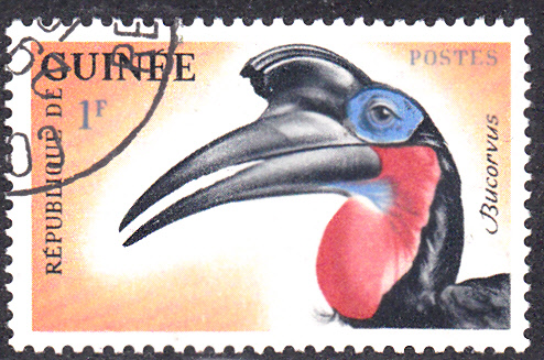 Diese Marke aus Angola (MiNr 346) zeigt einen Südlichen Hornraben (Bucorvus leadbeateri) oder Kaffernhornraben (Bucorvus cafer).