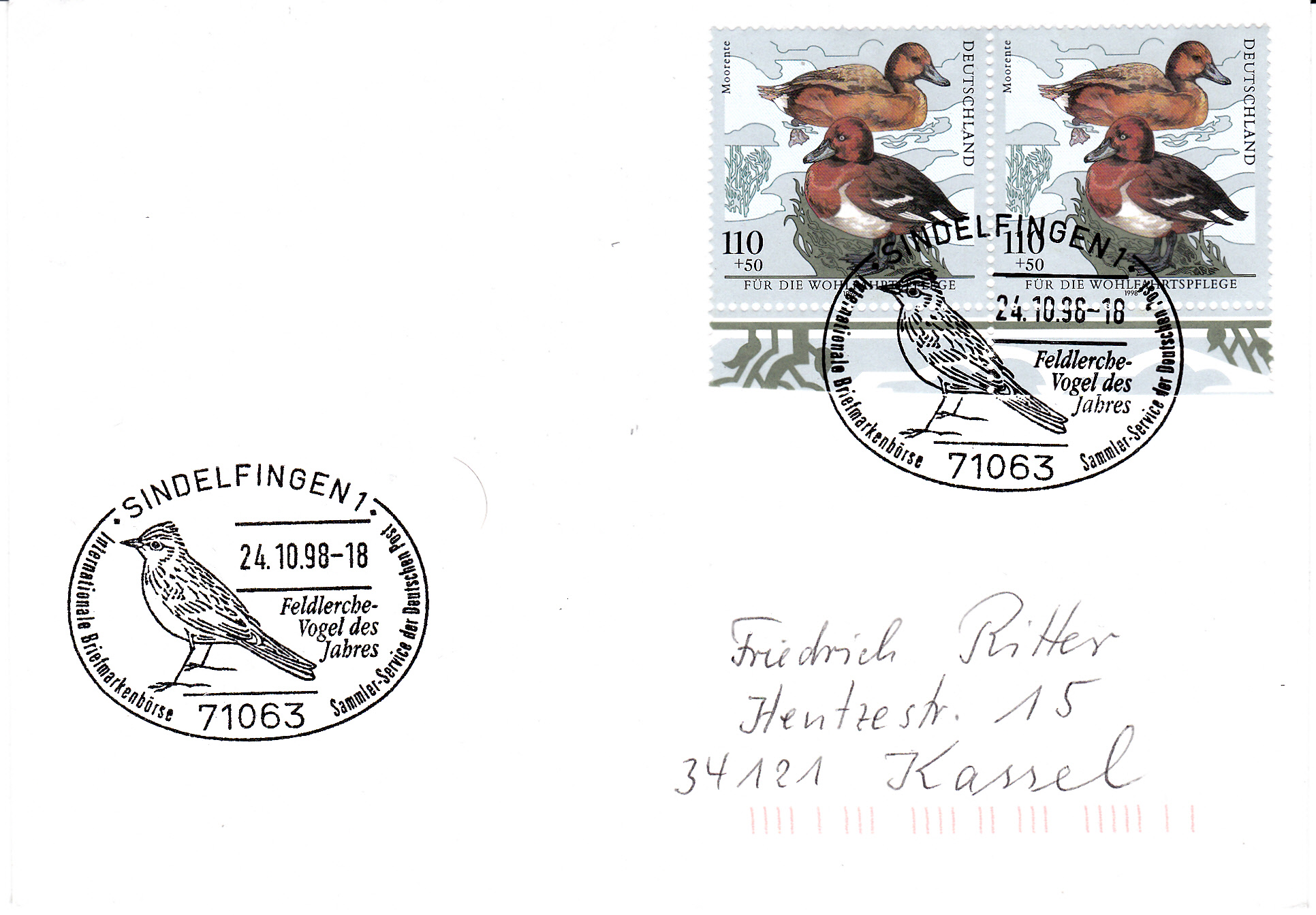 Auf einer Marke der Wohlfahrtsmarken der Deutschen Post (MiNr 2017) ist ein Moorentenpaar zu sehen.