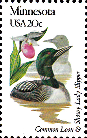 In der Serie "Vögel und Blumen der 50 Bundesstaaten" erschien in den USA eine Marke, (MiNr 1554) die einen Eistaucher (Gavia immer) zeigt. Die Marke gibt es in zwei Zähnungen: A = gez. K 11 1/4 und F = gez. L 10 3/4:11 1/4.