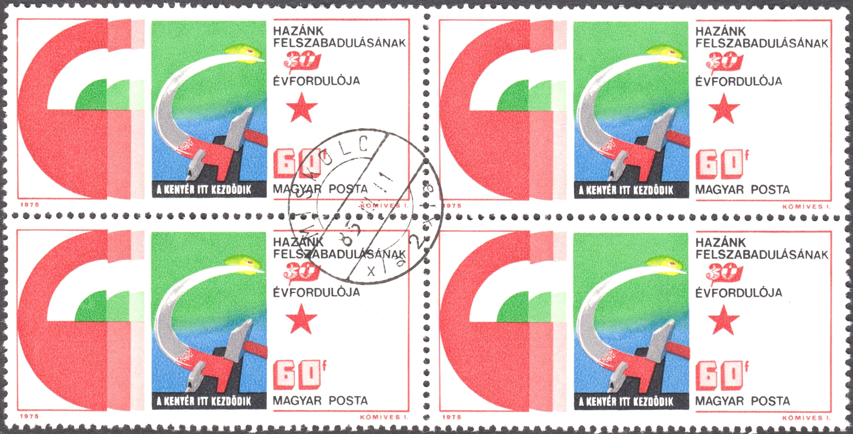 Ungarn MiNr. 3027 A erschien am 17.03.1975 innerhalb eines Satzes zum Thema "30. Jahrestag der Befreung - Plakate" und zeigt das Plakat "Das Brot beginnt hiermit!" von György Konecsni: