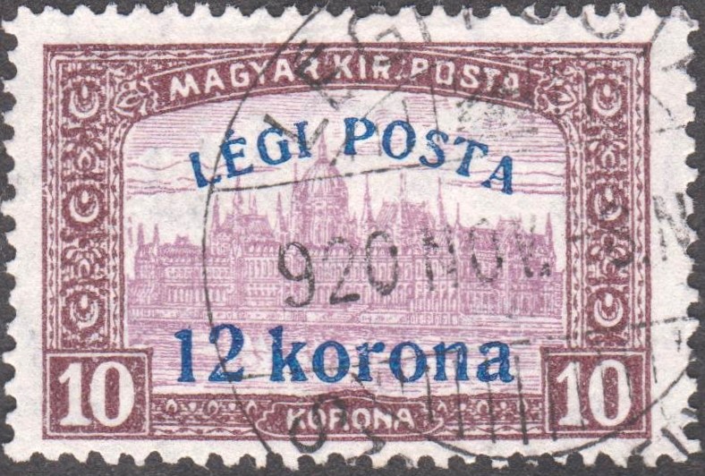 Am 7. November 1920 erschienen drei Flugpostmarken als Nachauflage von MiNr. 207 mit zweizeiligem Aufdruck "LÉGI POSTA" und neuer Wertstufe. Auflage: 311.600 Sätze