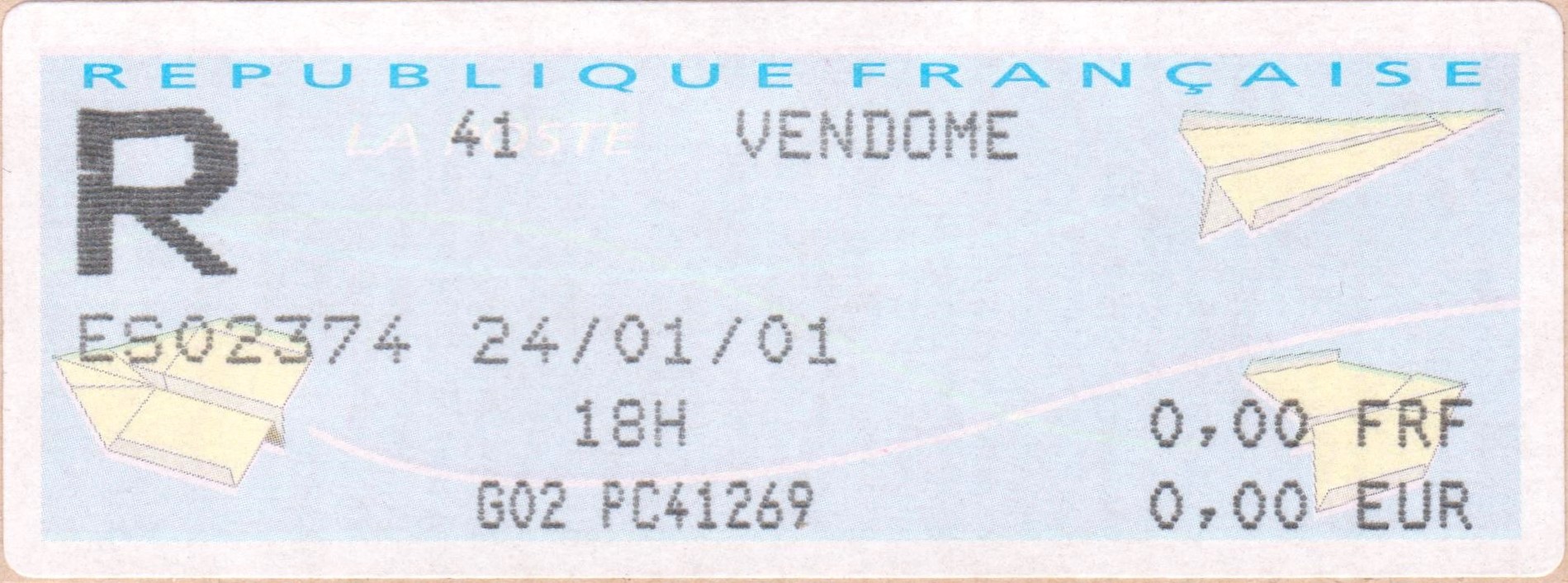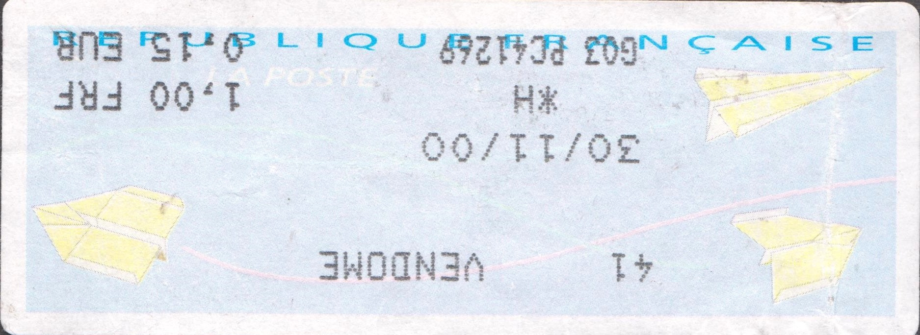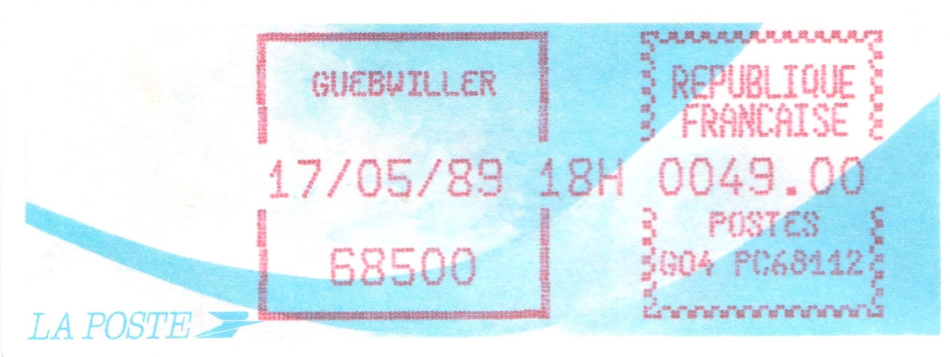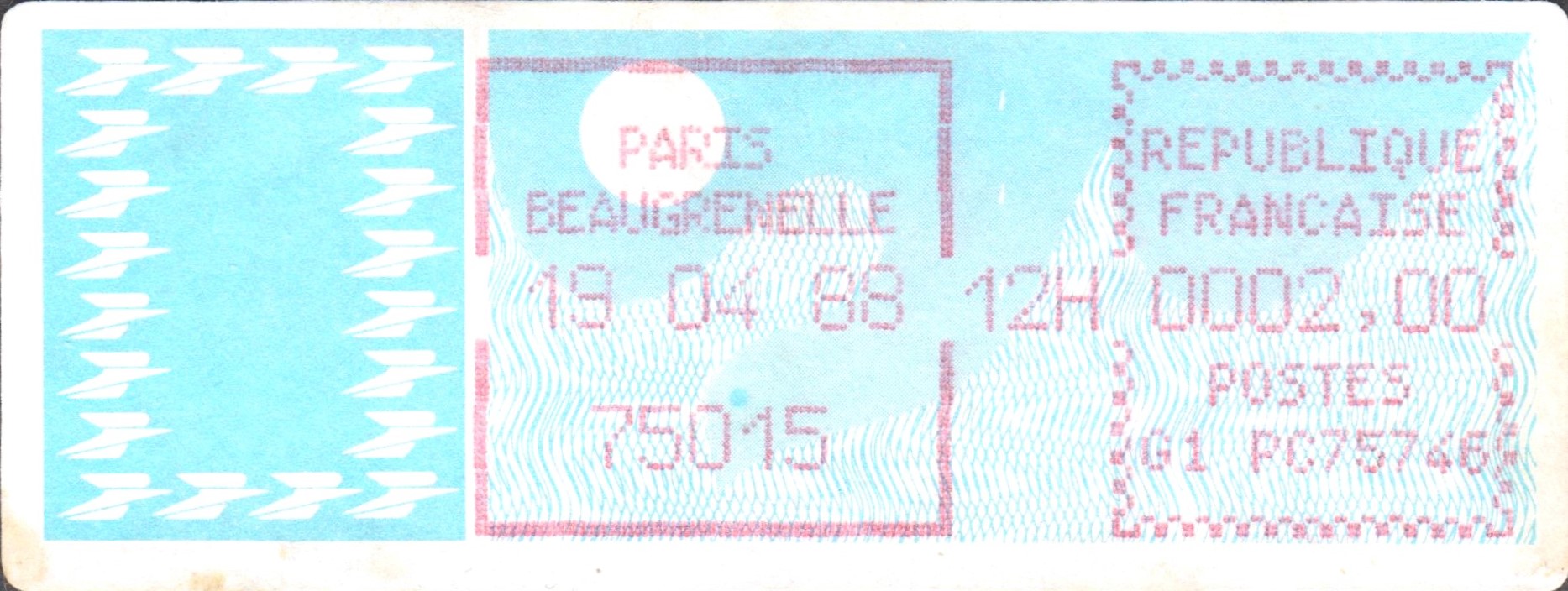 Frankreich 1990, Automatenmarke Type 11 II postfrisch sowie die dazu möglichen Varianten der Quittung aus dem Automaten, die je nach gewählter Bedienungssprache vom Automaten in 5 verschiedenen Sprachen ausgedruckt wurde!