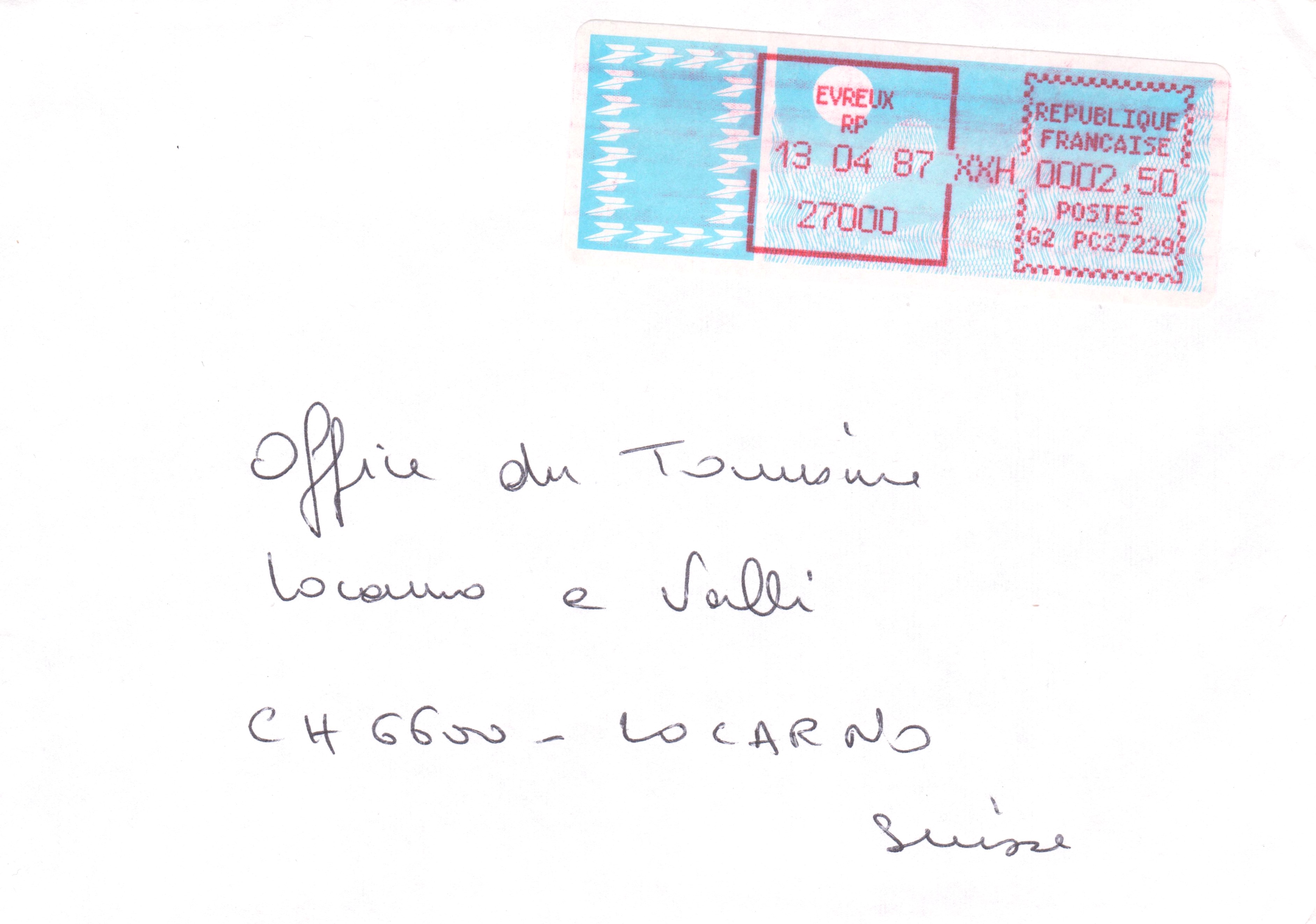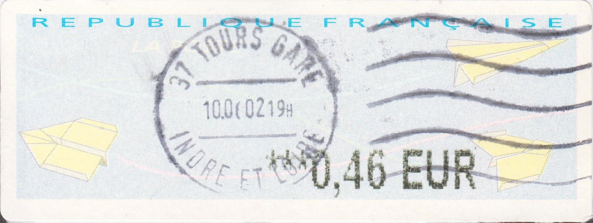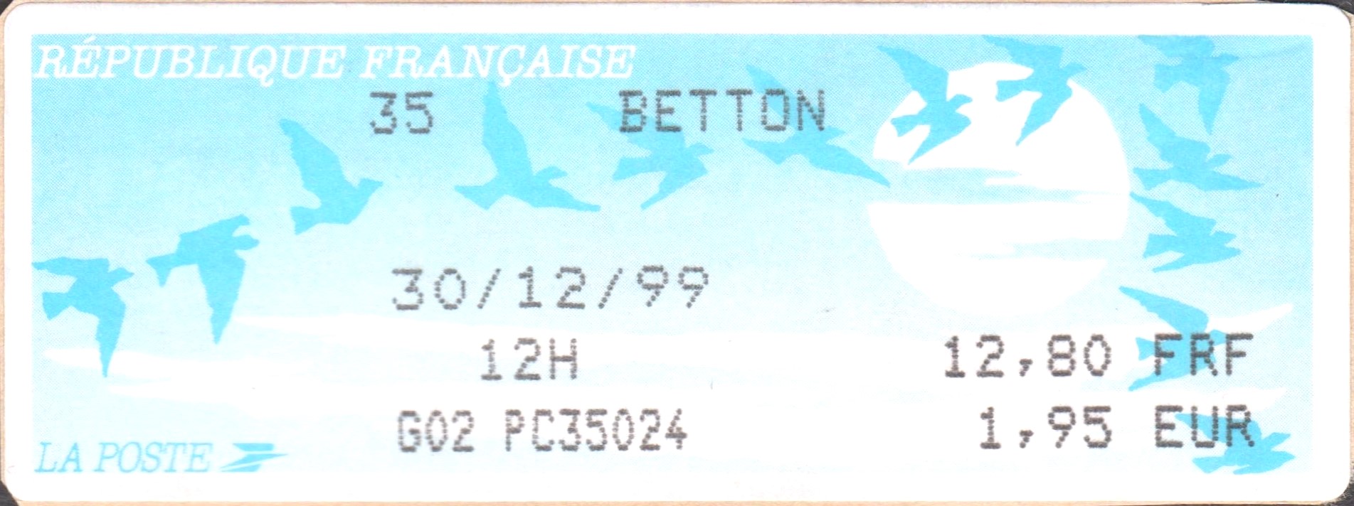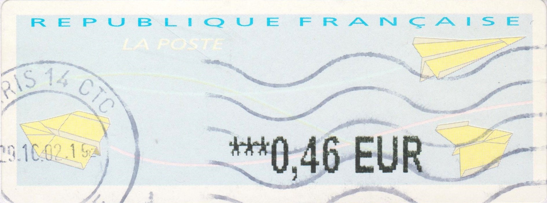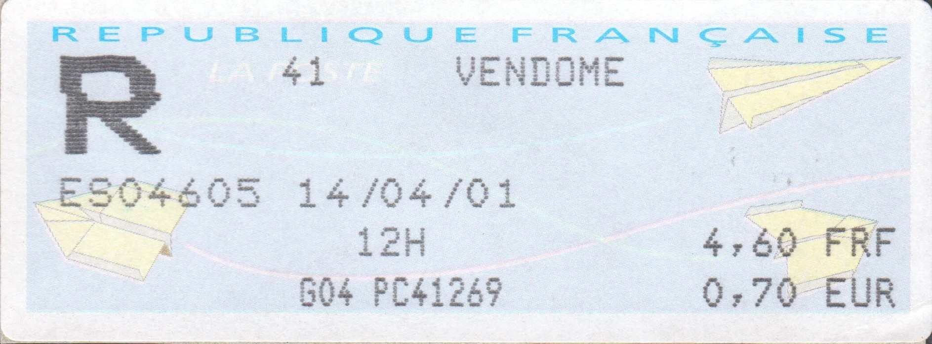 Frankreich 1990, Automatenmarke Type 11 II postfrisch sowie die dazu möglichen Varianten der Quittung aus dem Automaten, die je nach gewählter Bedienungssprache vom Automaten in 5 verschiedenen Sprachen ausgedruckt wurde!