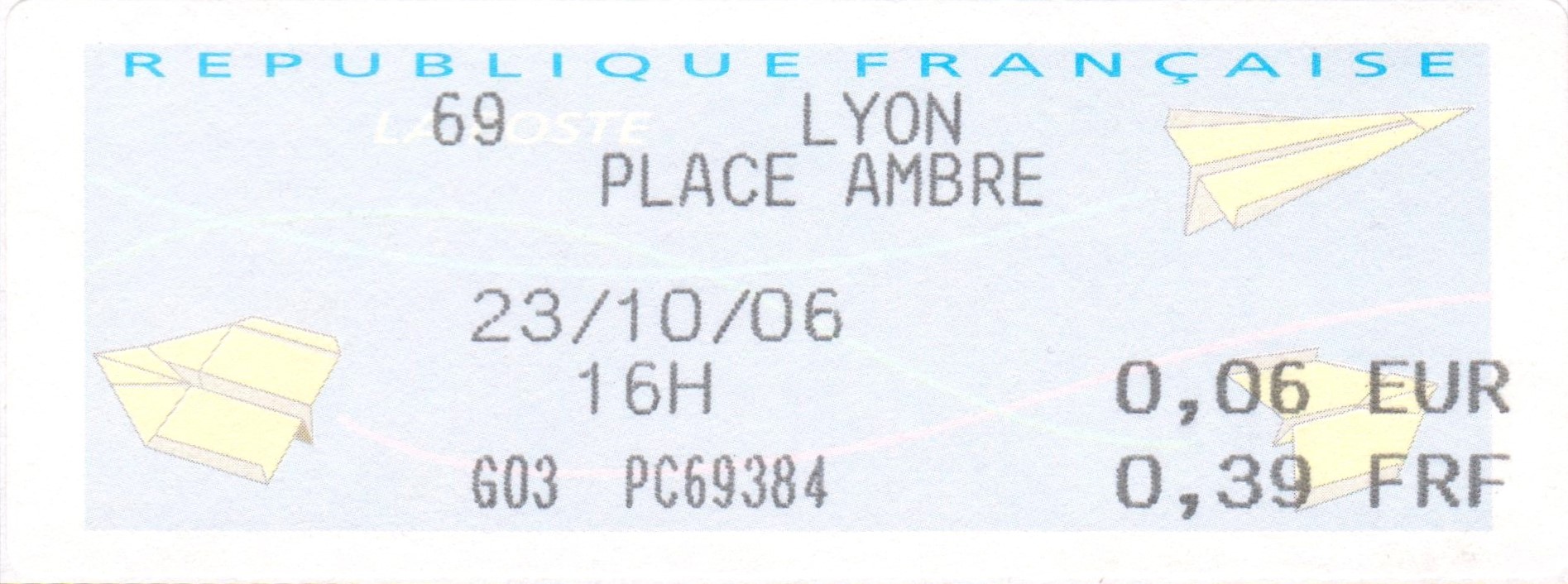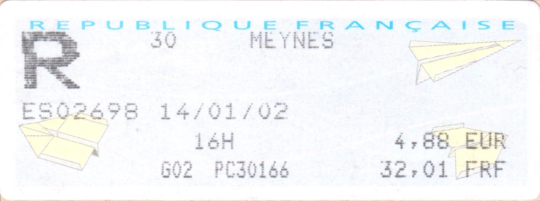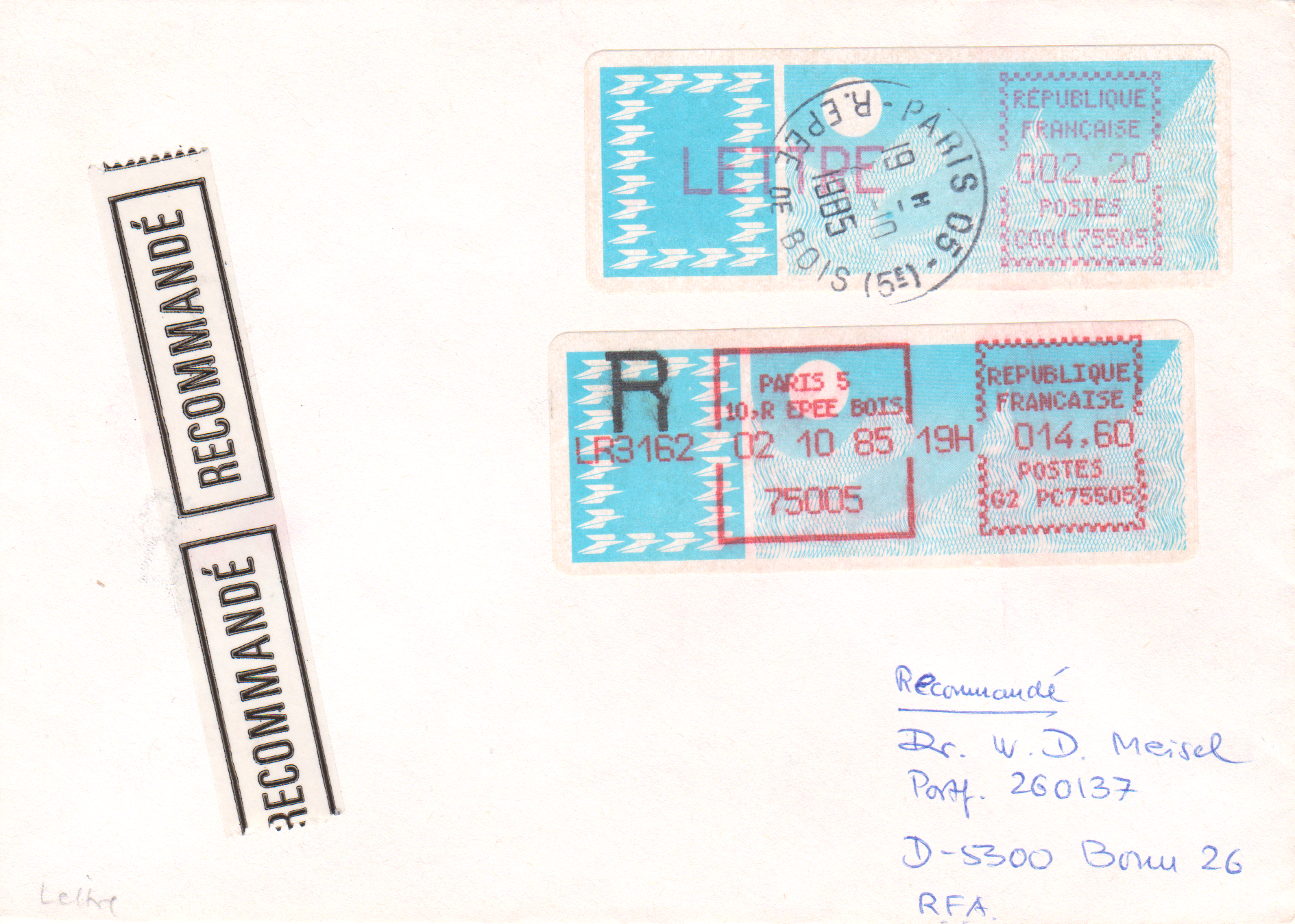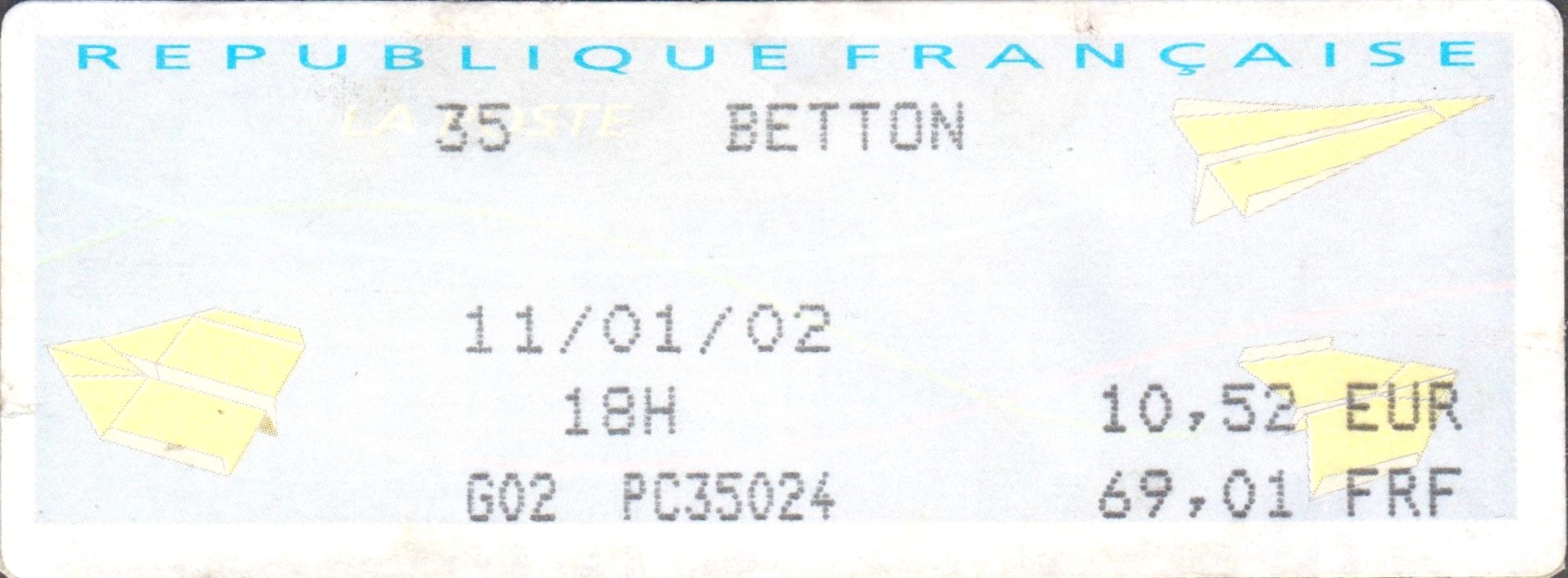 Frankreich 1990, Automatenmarke Type 11 II postfrisch sowie die dazu möglichen Varianten der Quittung aus dem Automaten, die je nach gewählter Bedienungssprache vom Automaten in 5 verschiedenen Sprachen ausgedruckt wurde!