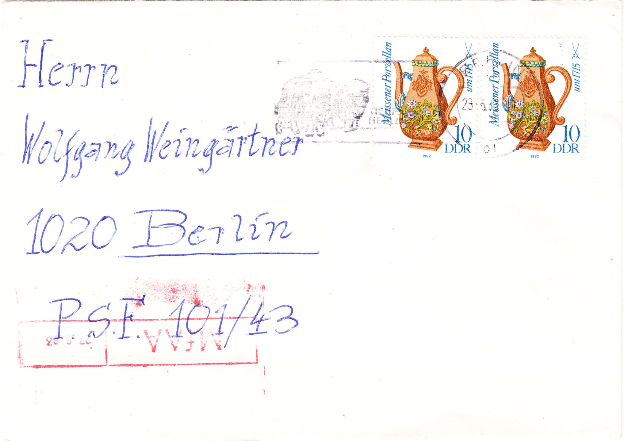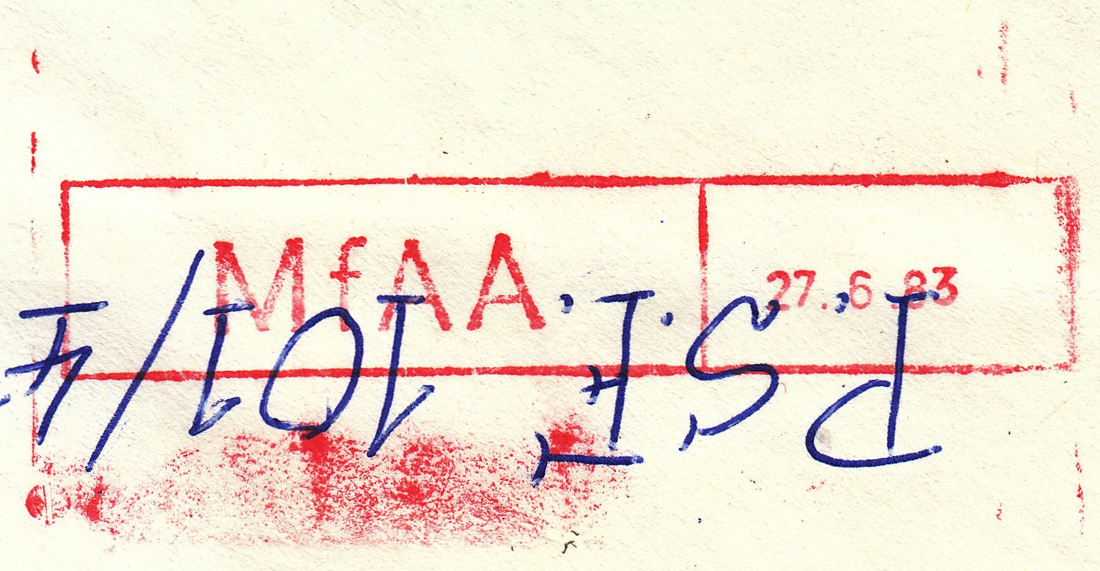 Dieser Brief wurde am 23.06.1983 in Berlin aufgegeben zur Weiterleitung durch MfAA an "PSF 101/43", was am 27.06.1983 erfolgte: