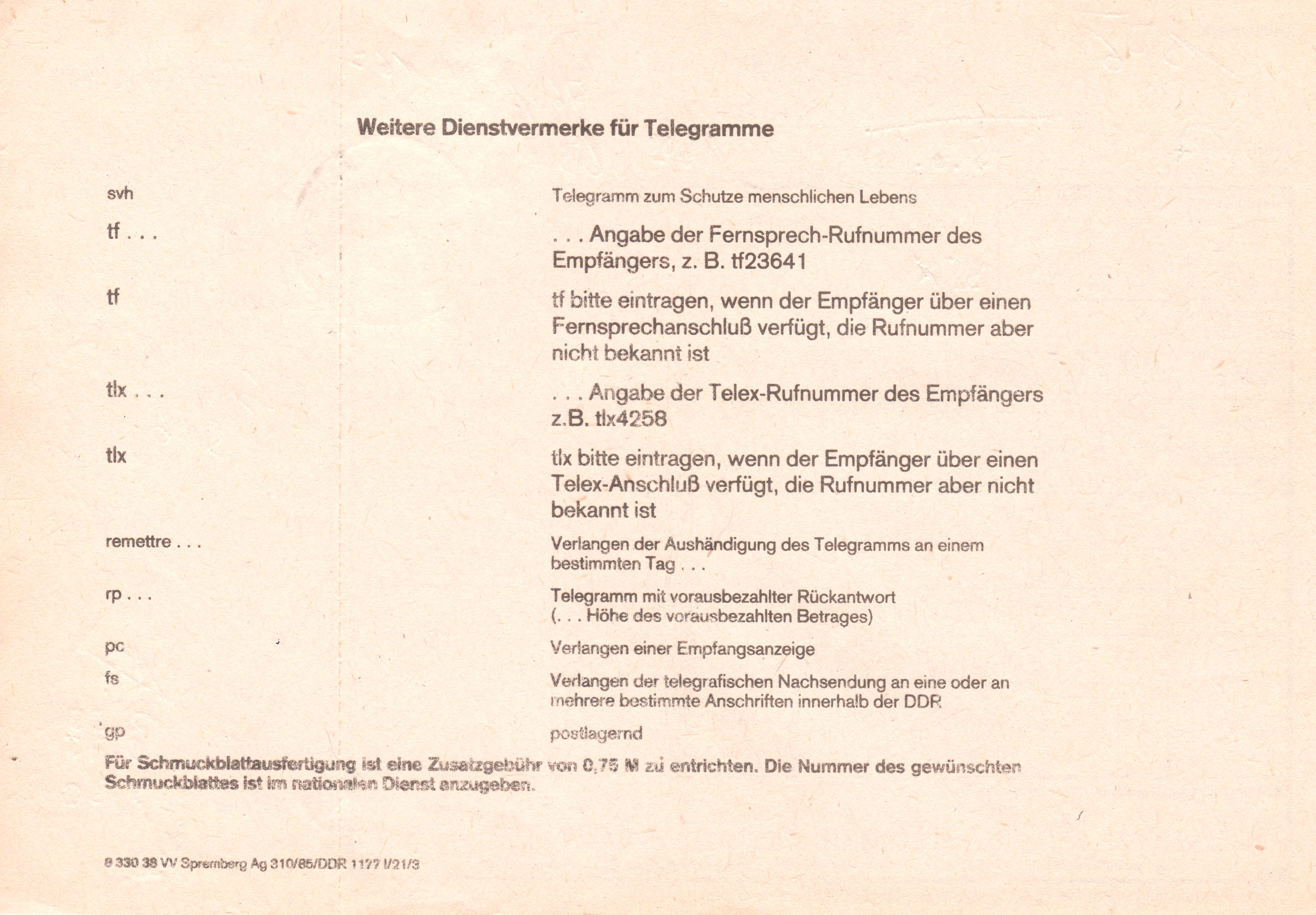 Foren-Übersicht Fragen und Diskussion Deutschland Deutschland ab 1945 Deutsche Demokratische Republik TELEGRAMM