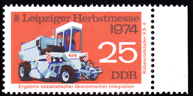 Auf der zweiten Marke der Serie (MiNr 1974) ist ein Rübenrodelader KS-6 abgebildet.