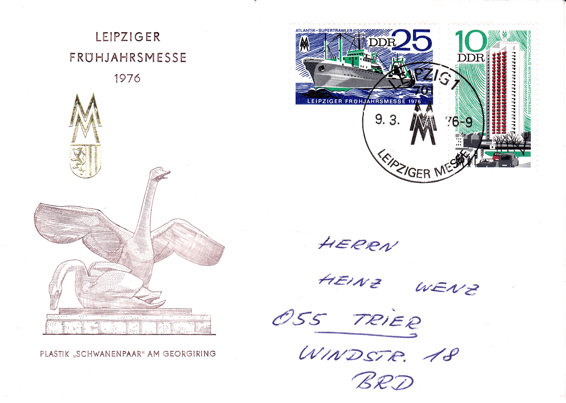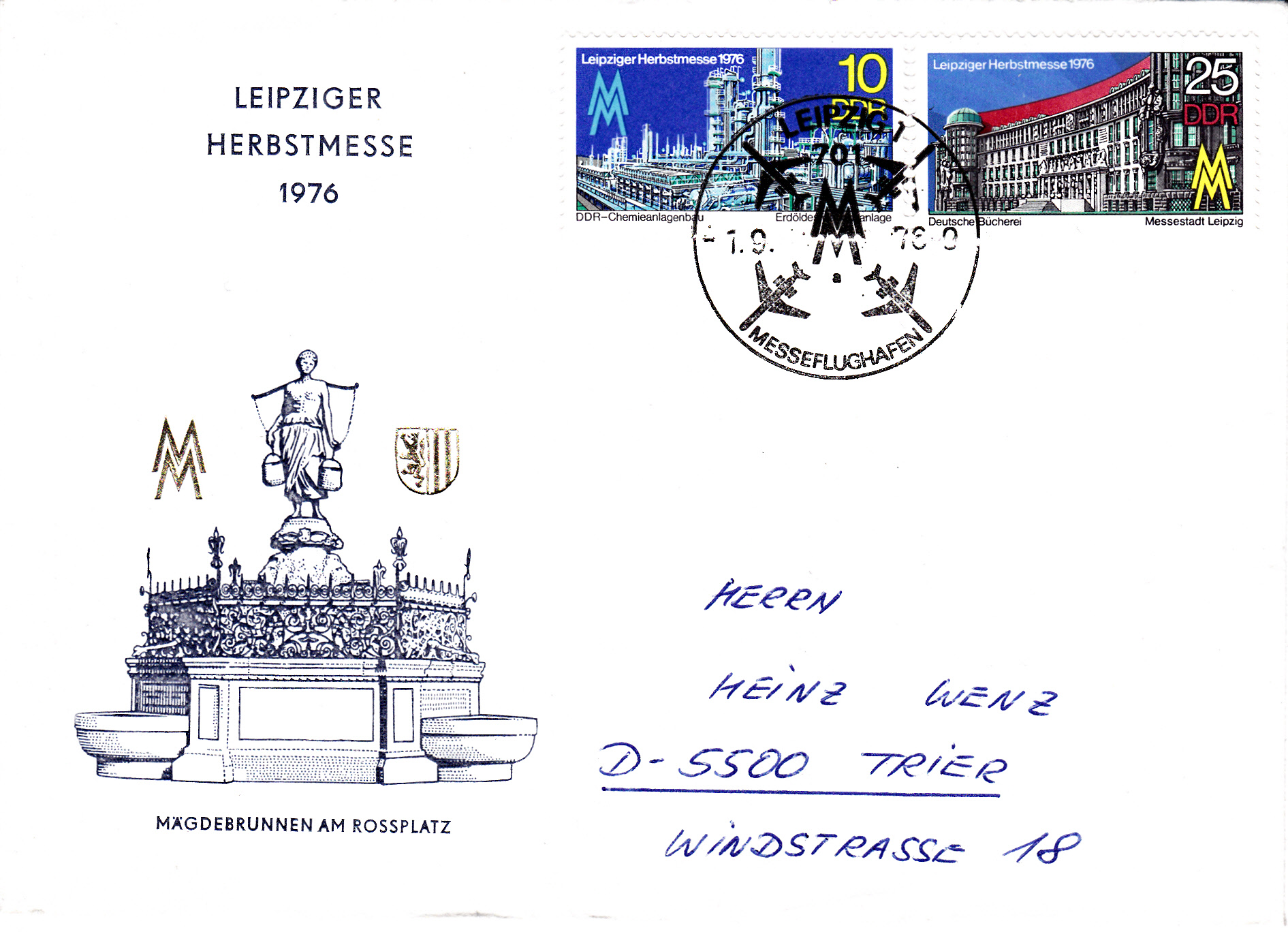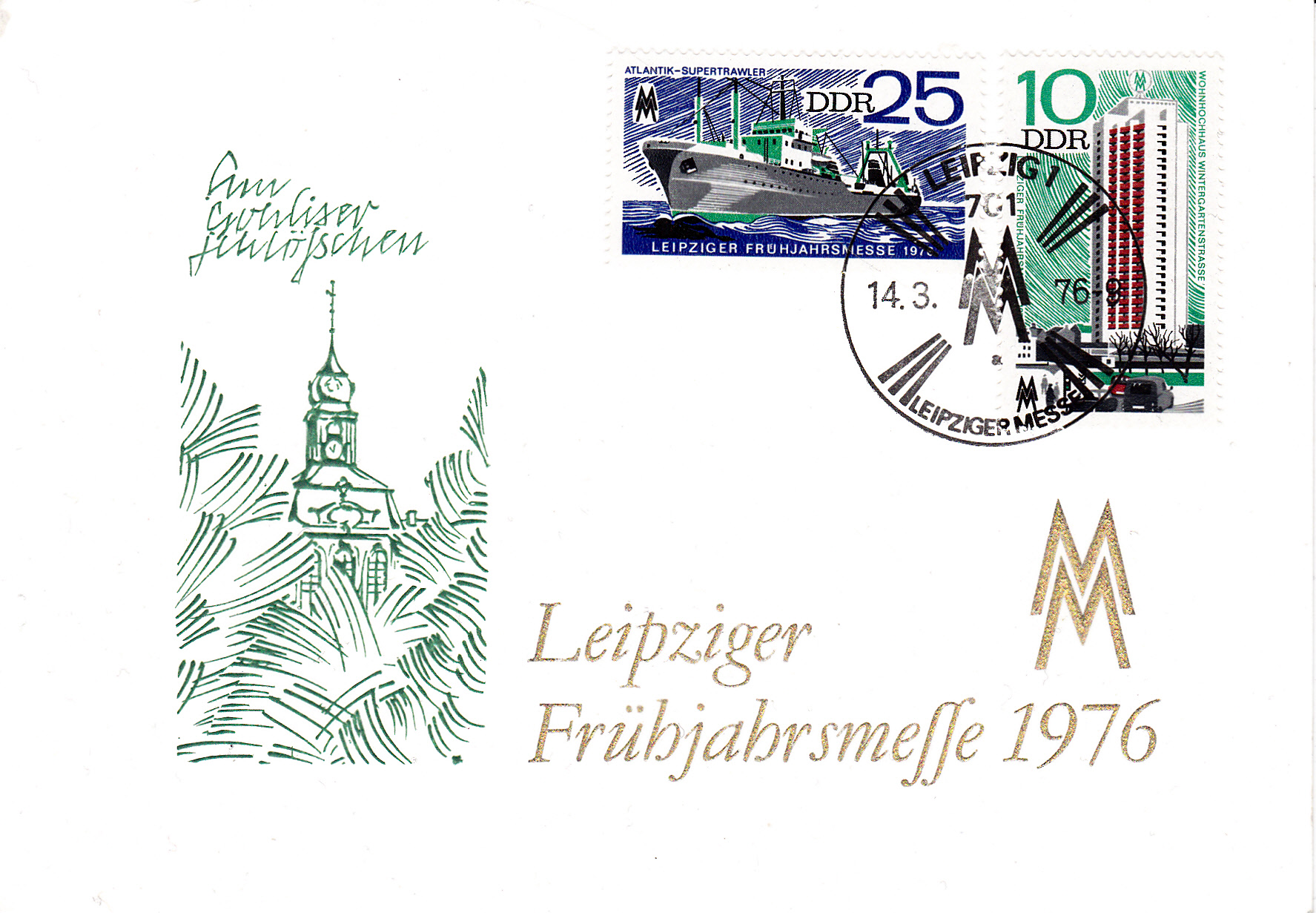 Auf dieser Stempelkarte sind wieder beide Marken aufgeklebt und mit einem Sonderstempel vom Eröffnungstag der Messe (14.3.1976) in einem ebenfalls schon früher benutzten Muster, jetzt aber wie bei anderen Stempel auch schon gesehen, mit einem kleinen Unterscheidungsbuchstaben "a".