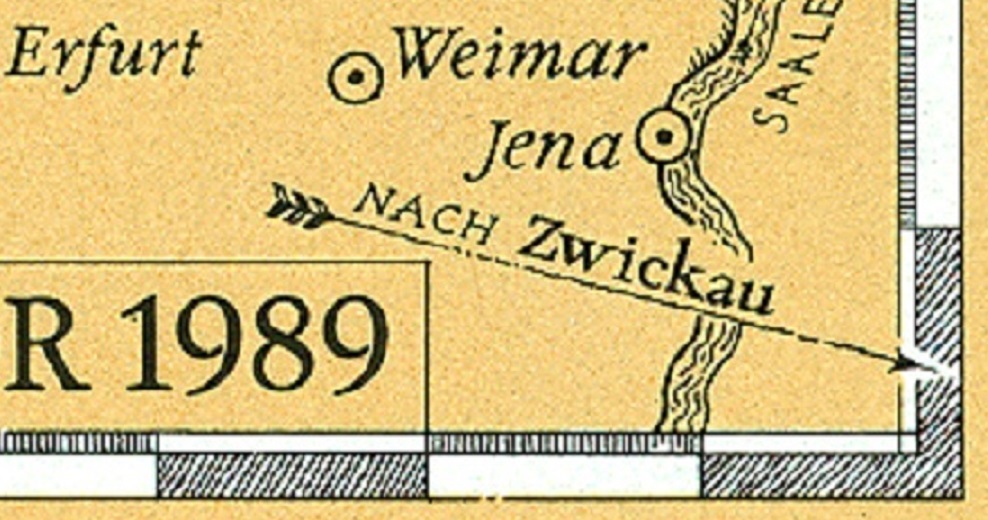 Rückseitig dokumentierte am 23.08.1989 um 18 Uhr ein Einzeiler in Wuppertal die Eilzustellung: