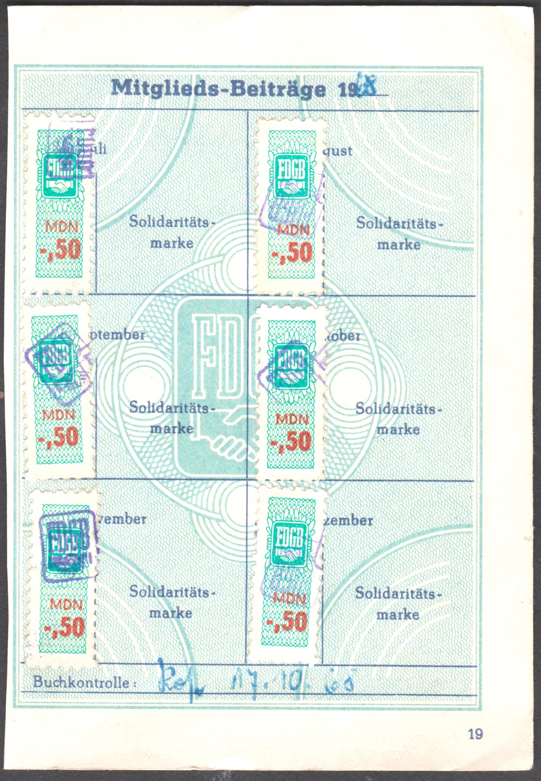 Der Gegenwert der Solidaritätsmarken floss als Solidaritätsspende dem Solidaritätsfonds des FDGB zu.