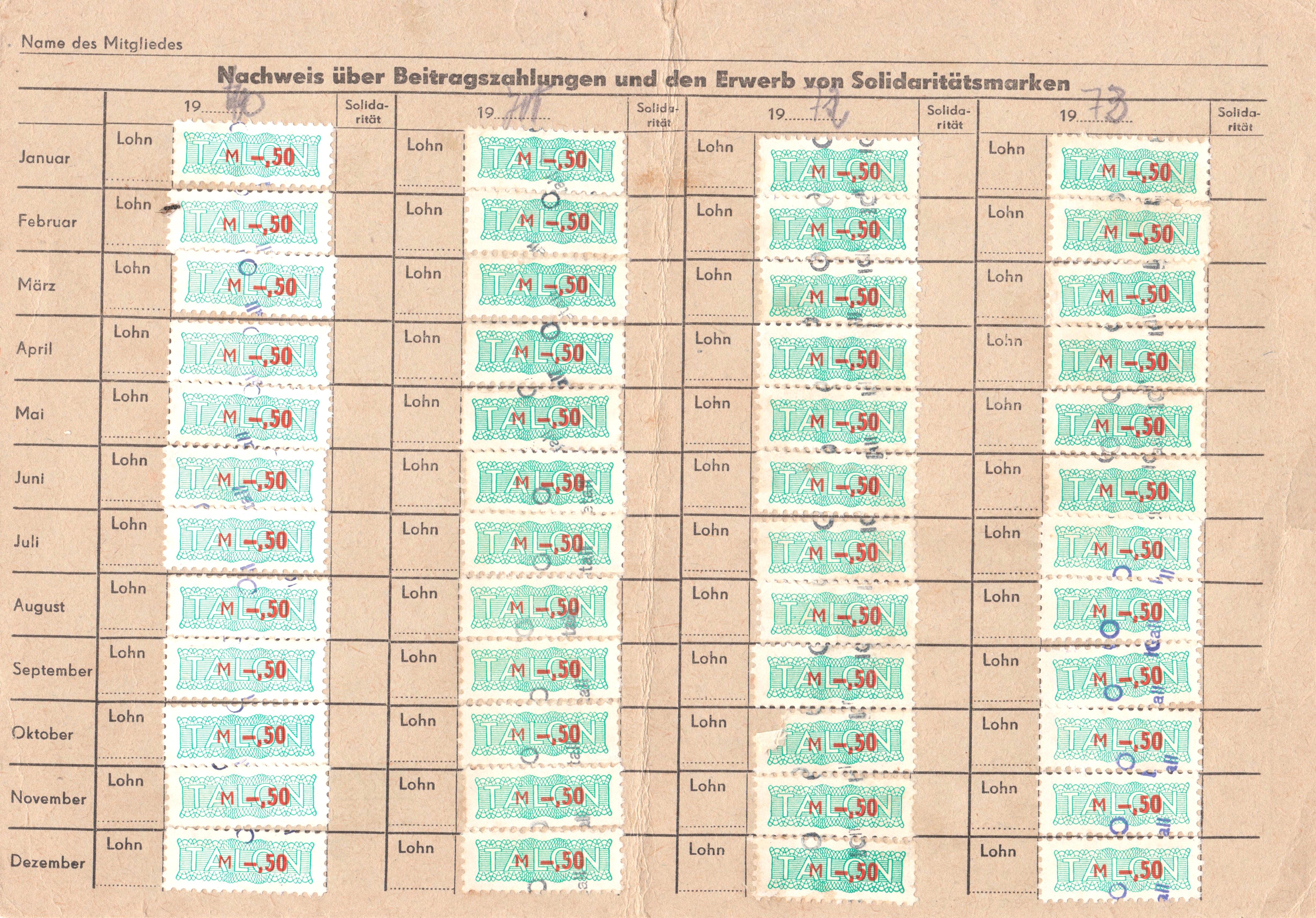 Der Wert der zu erwerbenden Solidaritätsmarke richtete sich nach der Höhe des Arbeitseinkommens und betrug i.d.R. ca. 20% des monatlichen Mitgliedsbeitrages.