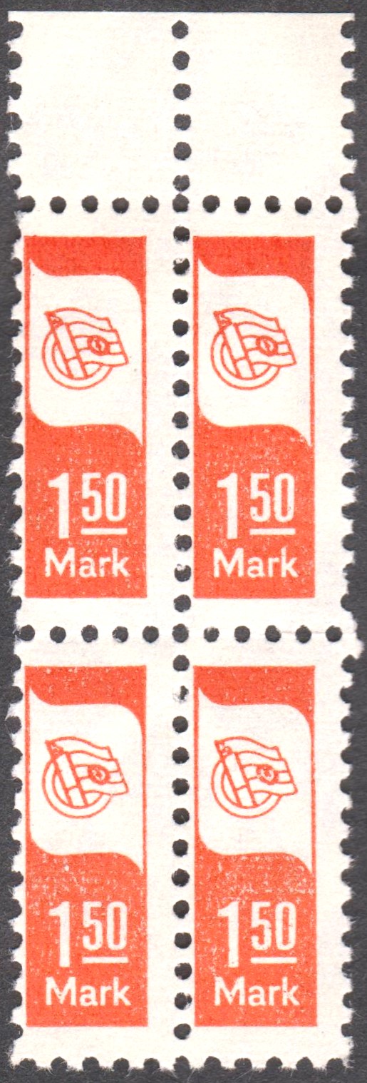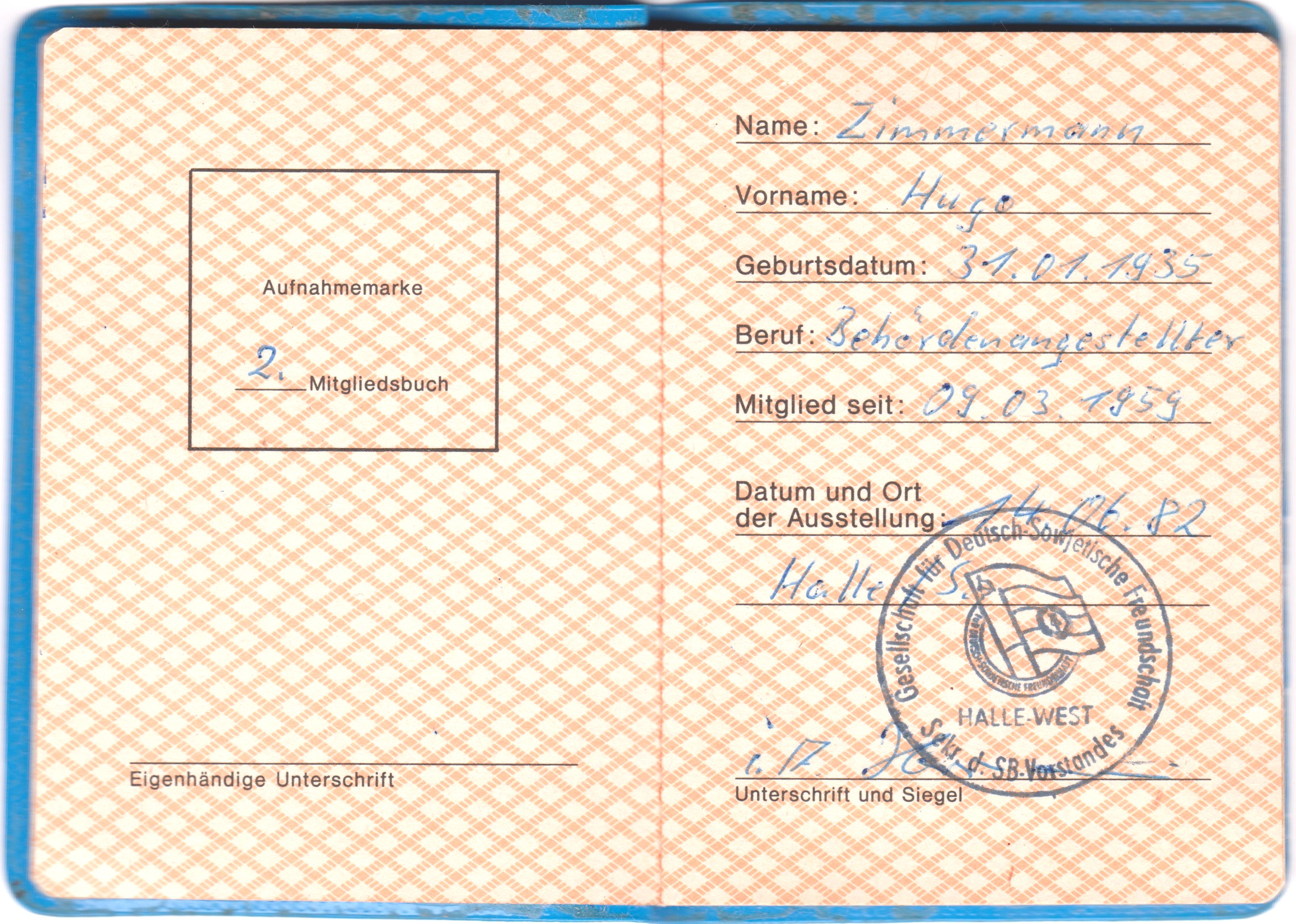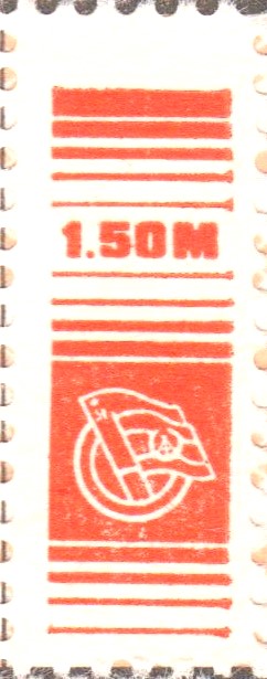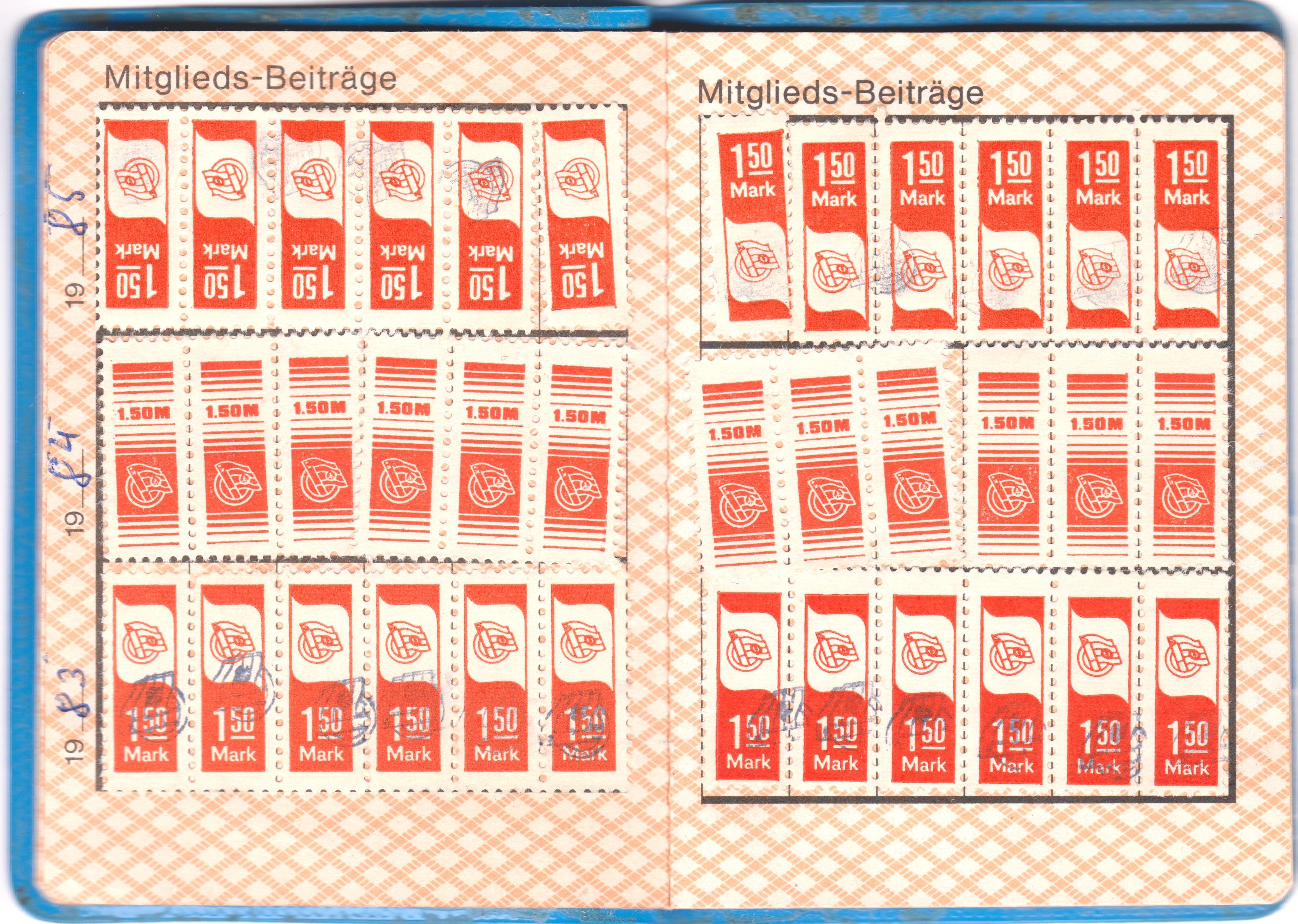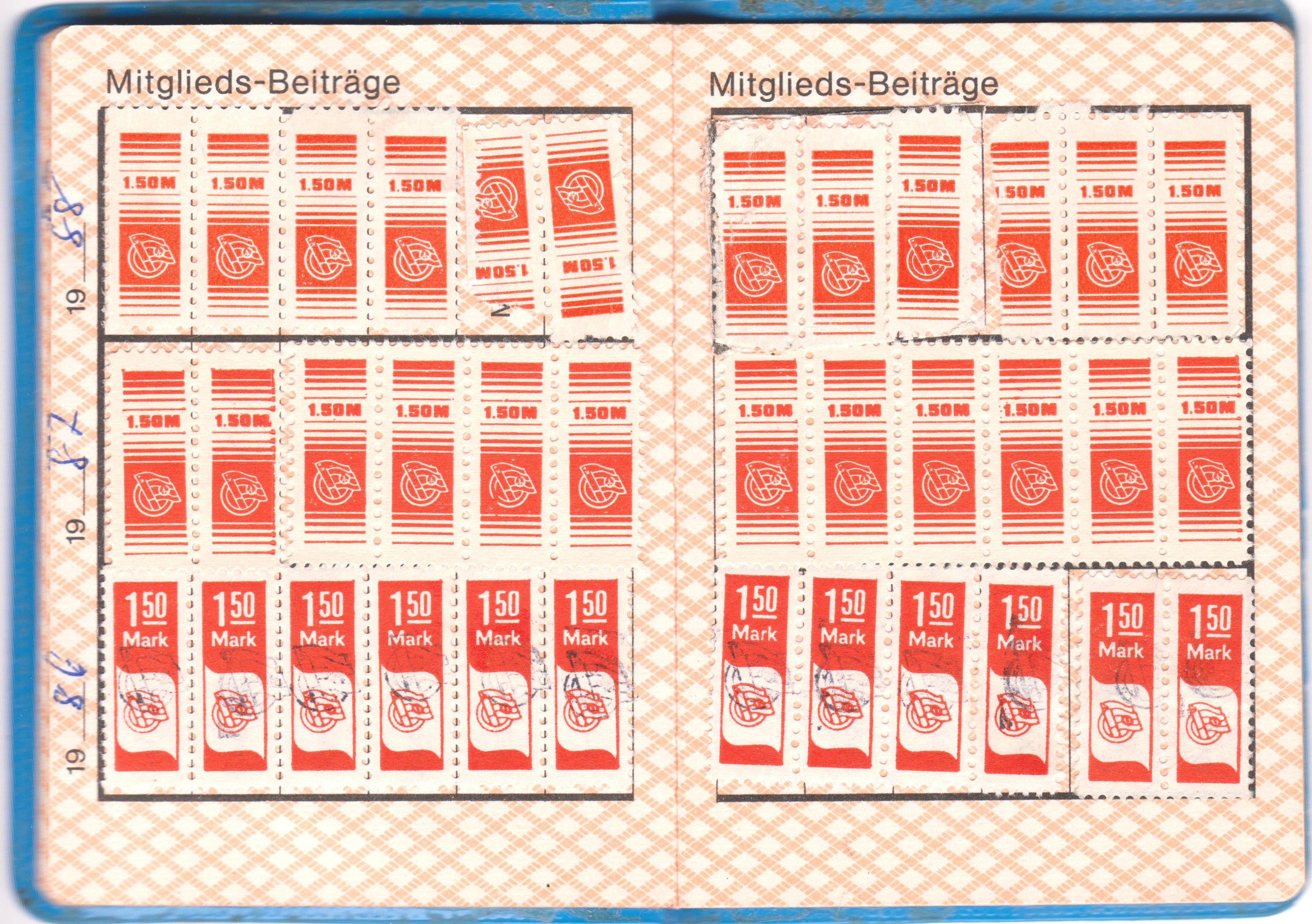 1975 waren noch keine Gebührenmarken der Wertstufe -.50 Mark verfügbar und es wurde für je zwei Monate eine Gebührenmarke der Wertstufe 1,- Mark verklebt: