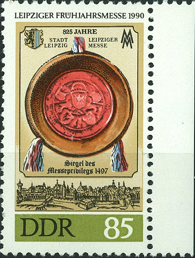 Die letzte Markenausgabe erschien 1990 zur Frühjahrsmesse am 6.März 1990. Die MiNr 3316 und 3317 zeigen historische Siegel des Messeprivilegs aus den Jahren 1268 (70 Pfennig-Wert) und 1497 (85 Pfennig-Wert).