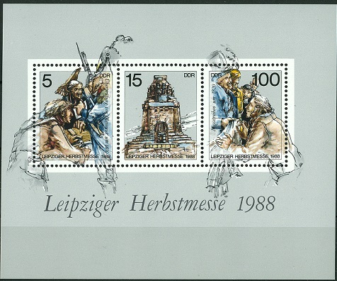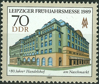 Die beiden Marken zur Frühjahrsmesse 1989 zeigen Leipziger Ansichten. Modernes Leipzig auf der MiNr. 3235 (70 Pfennig) und altes auf der MiNr. 3236 (85 Pfennig).