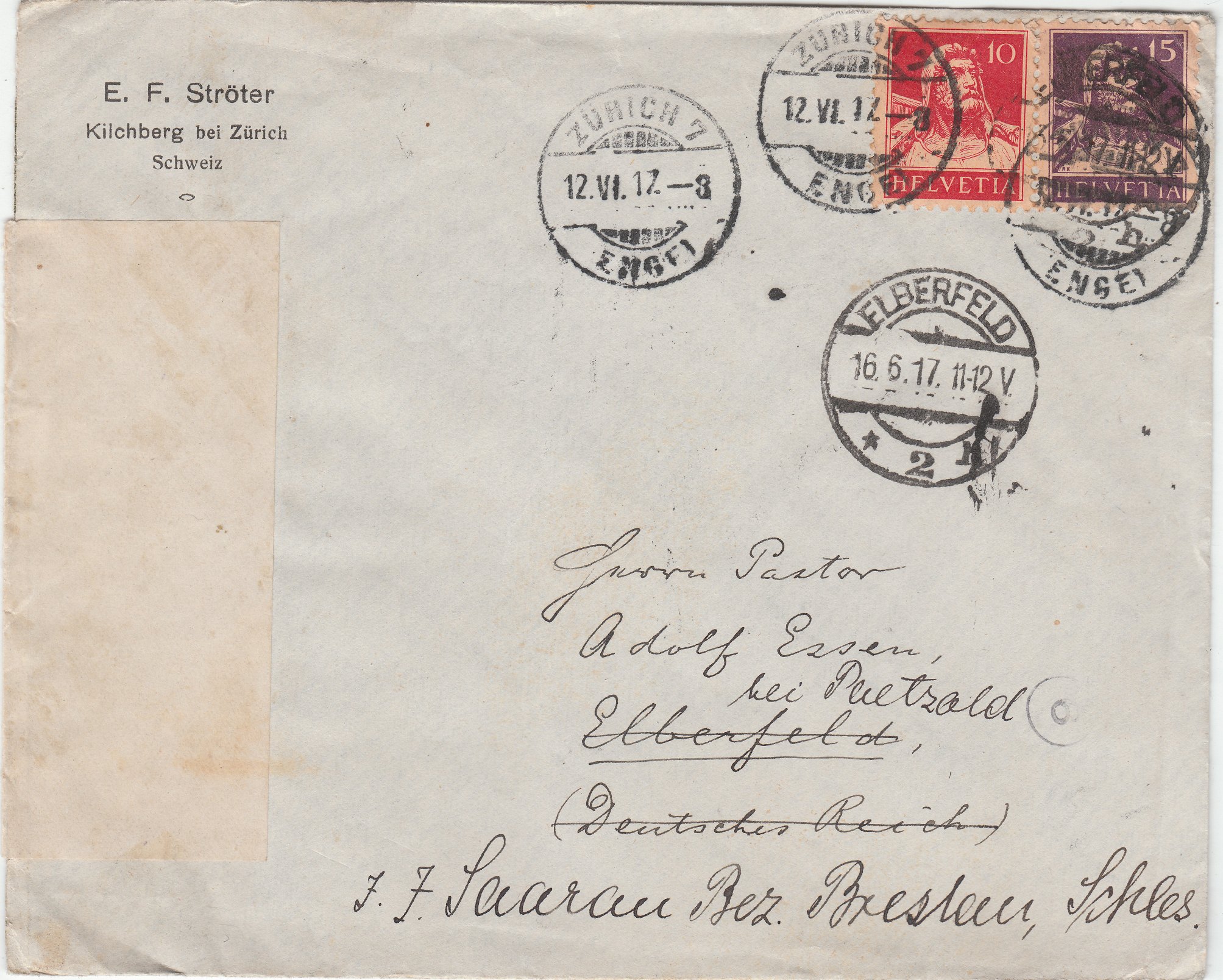 Dieser Brief wurde, adressiert nach Elberfeld, am 12.6.1917 in Zürich aufgegeben: