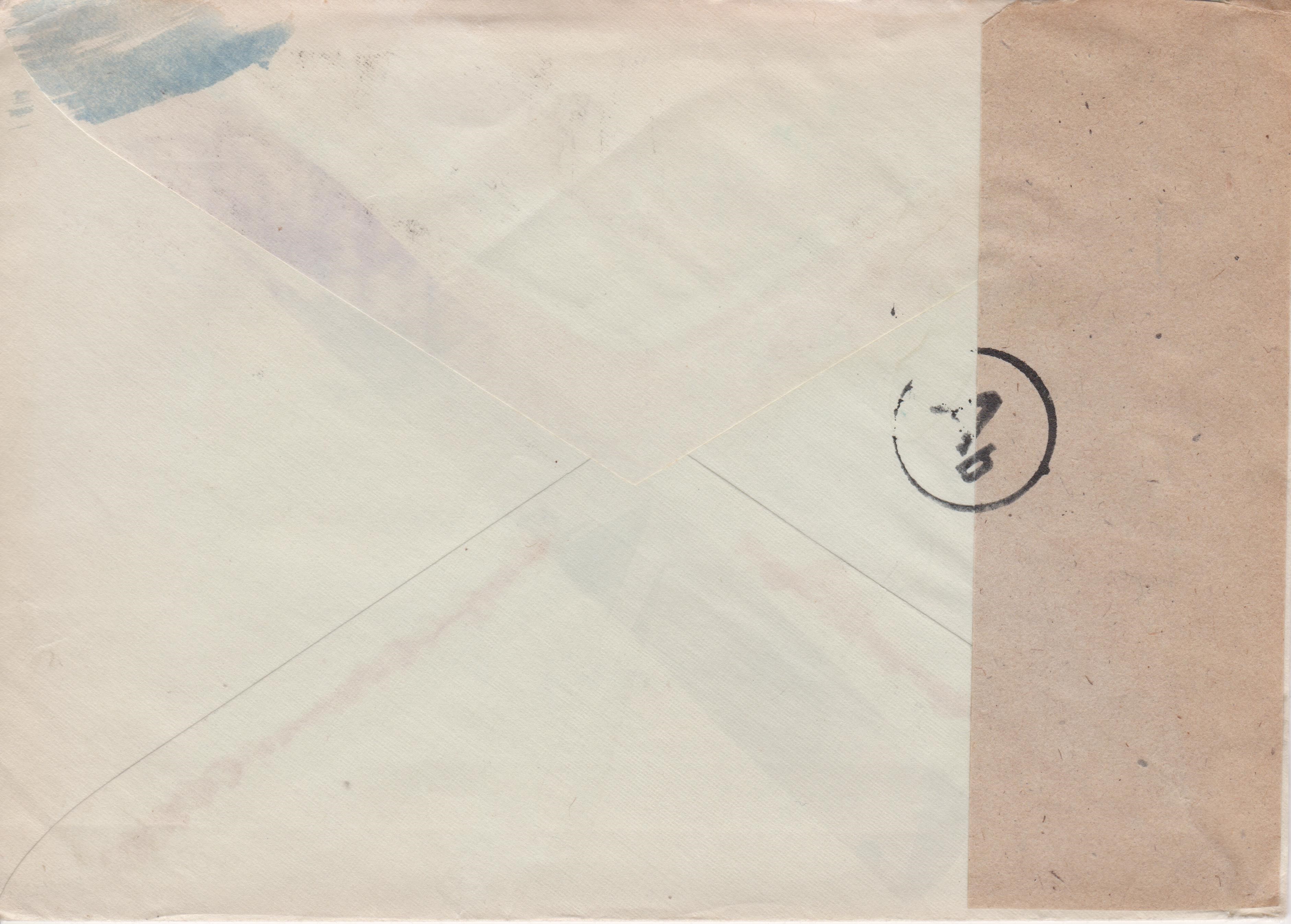 Anschließend wurde der Brief mit einem neutralen, braunen Verschlußstreifen wieder verschlossen, was ein Handdurchlaufstempel "Ab", Landsmann BD1.5, dokumentiert.