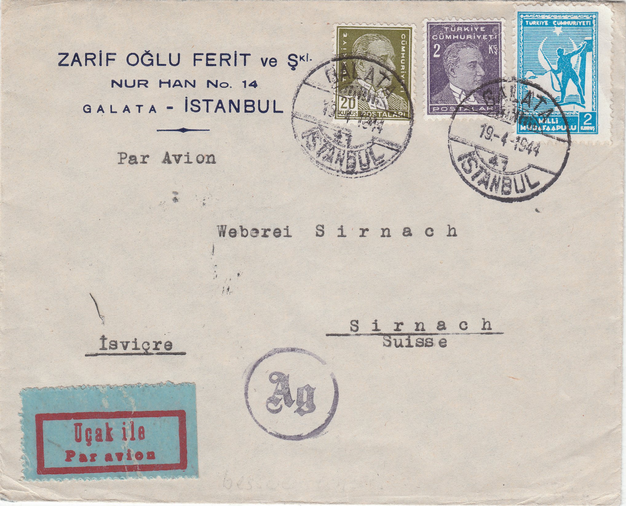 Dieser am 15.11.1943 in Istanbul aufgegebene Brief durchlief laut rückseitigem Stempel am 17.11.1943 WIEN, um am 20.11.1943 seinen Bestimmungsort SIRNACH zu erreichen. Rückseitig findet sich ein Prüferstempel "219".