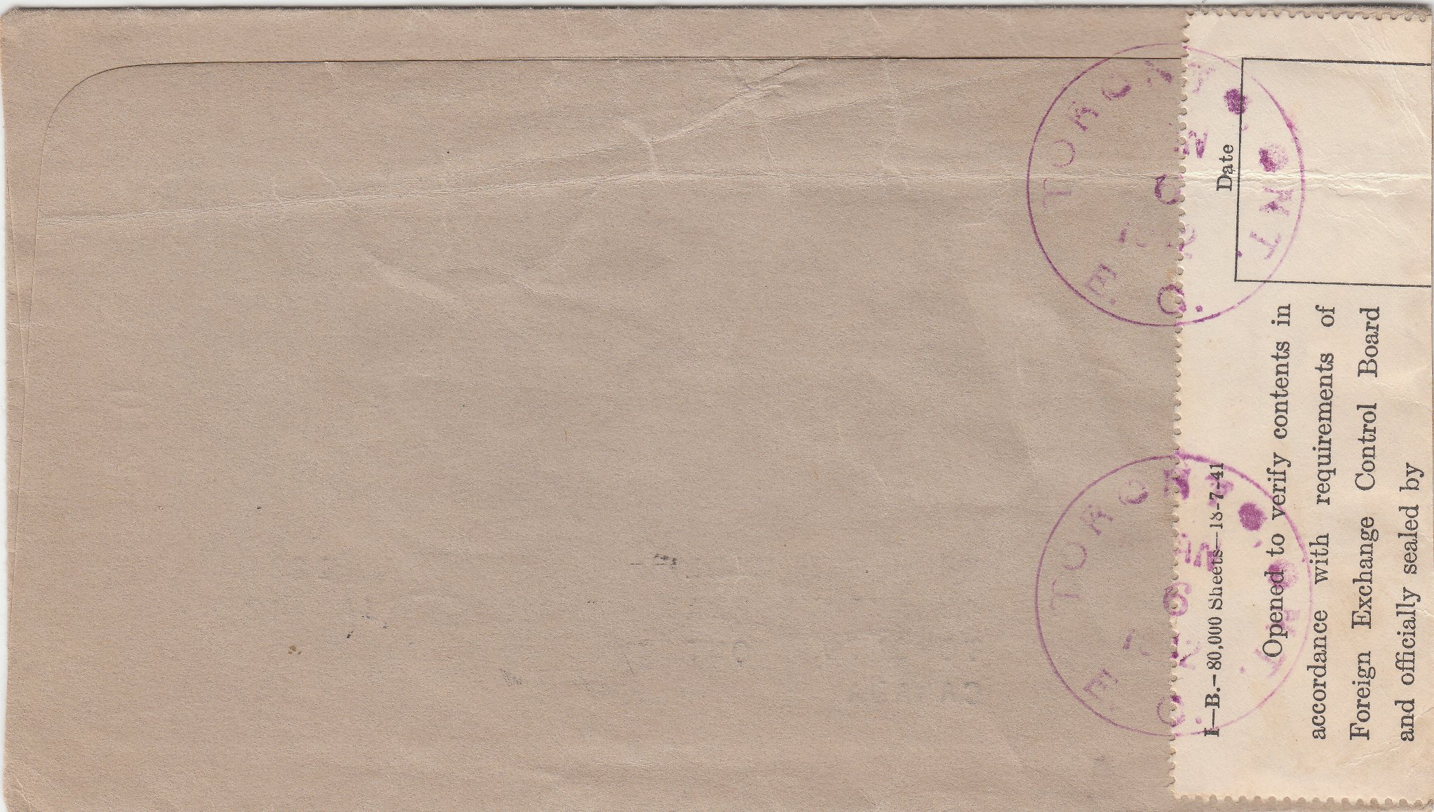 Der Brief wurde linksseitig geöffnet und mit einem Verschlußzettel aus weißem Papier mit schwarzem Druck "P.C. 90 OPENED BY EXAMINER DB / 578" wieder verschlossen.
