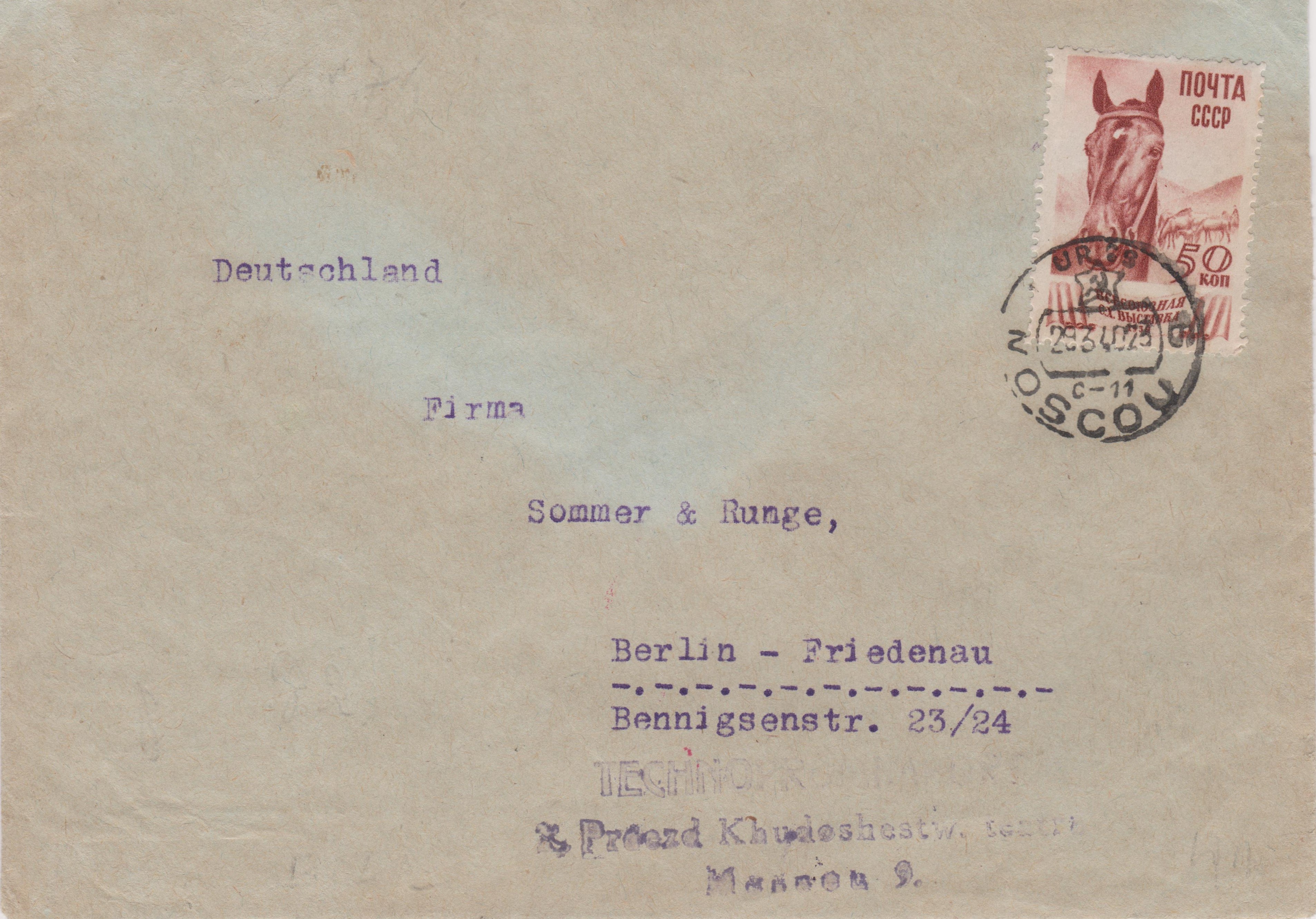 Brief nach "TROISDORF", per Einschreiben am 28.12.1939 in Moskau aufgegeben: