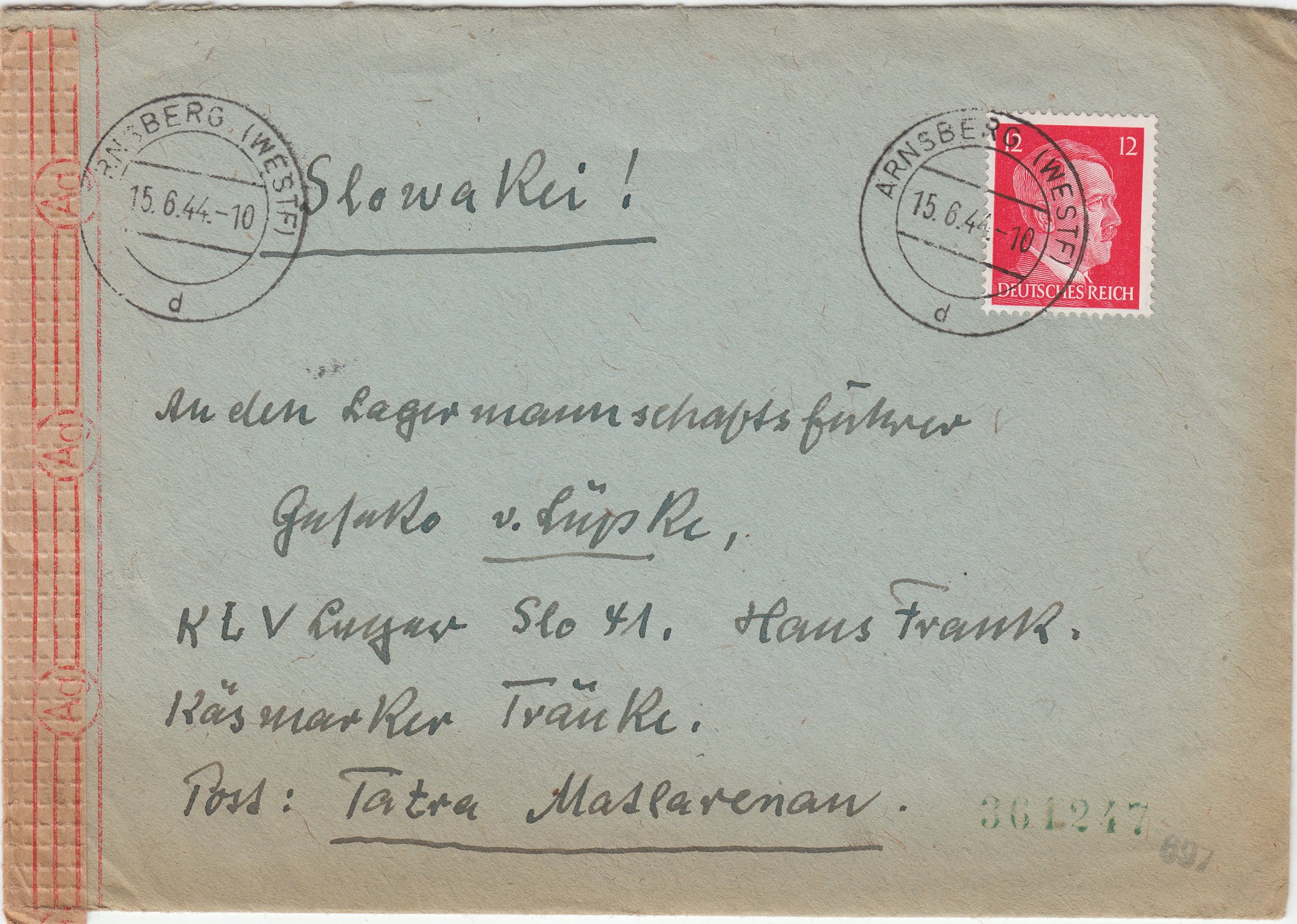 Dieser Brief wurde am 15.06.1944 in Arnsberg aufgegeben:
