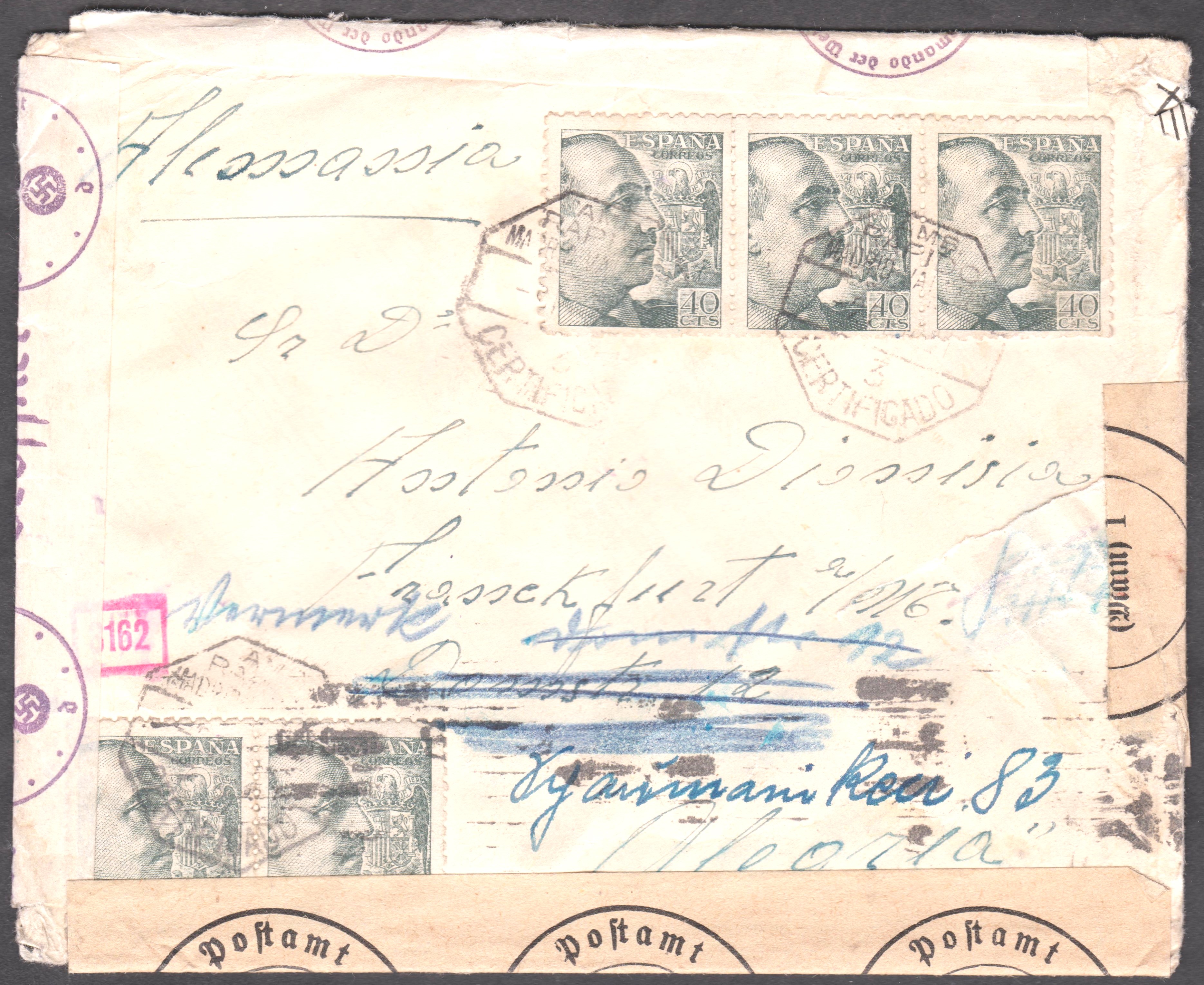 Brief, adressiert nach Rotterdam, aufgegeben in MURCIA am 27.10.1943: