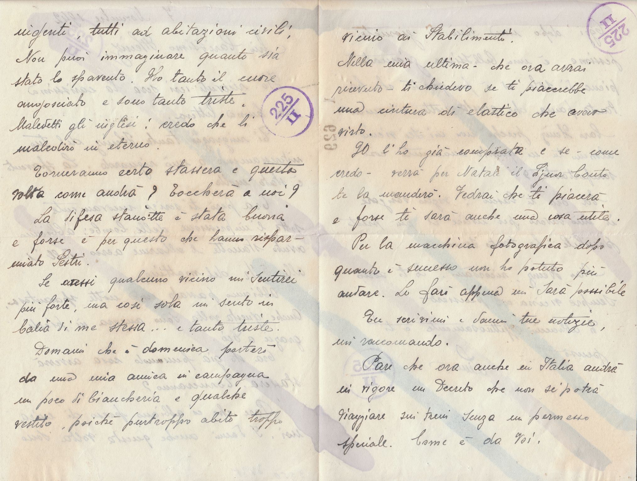 Der Beleg durchlief die italienische Auslandsbriefprüfstelle Mailand, wurde dort rückseitig geöffnet und mit einem Verschlußzettel mit vertikalen Trennstrichen "VERIFICATO PER CENSURA" wieder verschlossen. Zur Dokumentation wurde rückseitig der Zweikreisstempel "UFFICIO CENSURA POSTA ESTERA II", Außendurchmesser 34 mm, Innendurchmesser 19 mm, abgeschlagen.