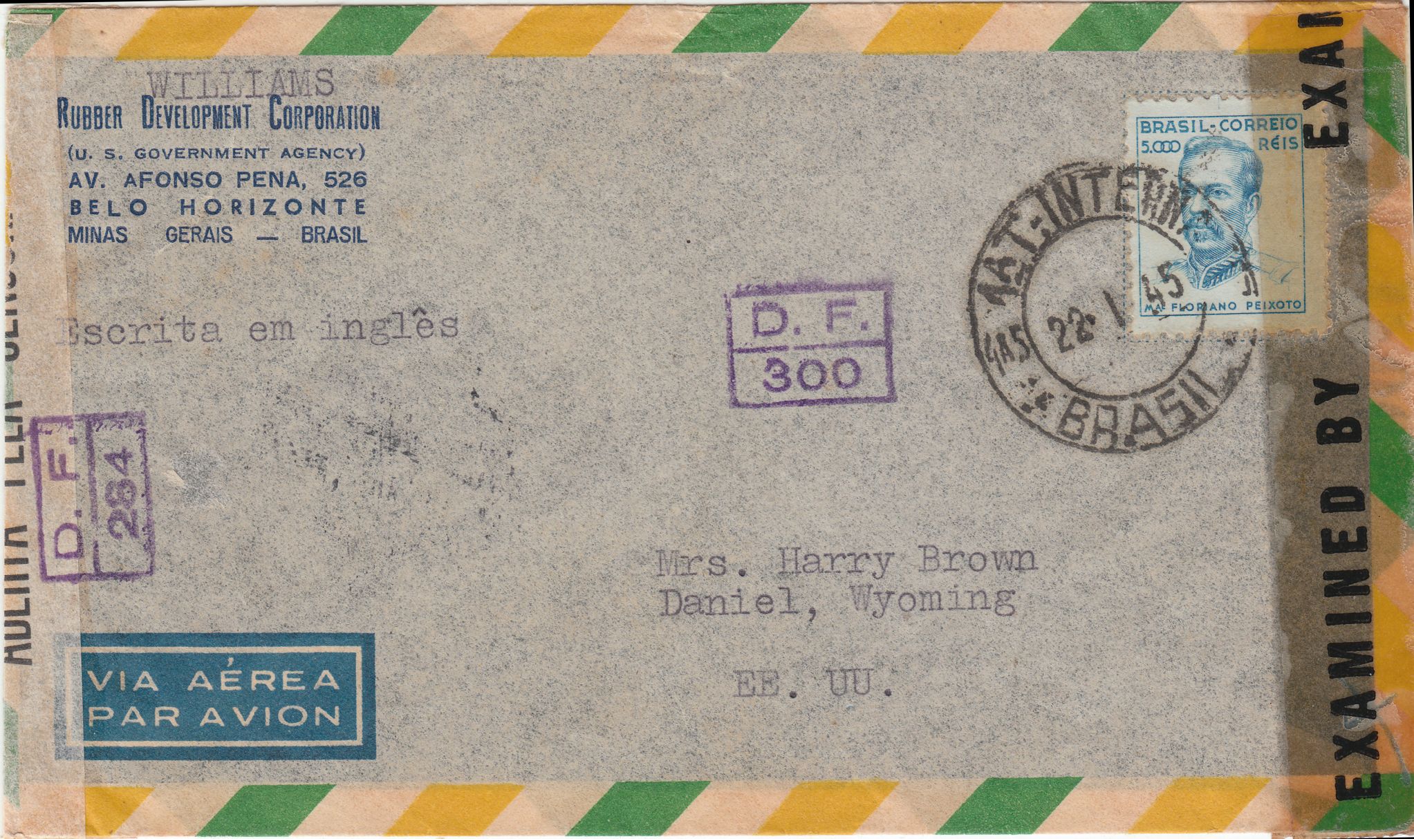 Dieser Luftpostbrief wurde am 22.01.1945 in Brasilien aufgegeben: