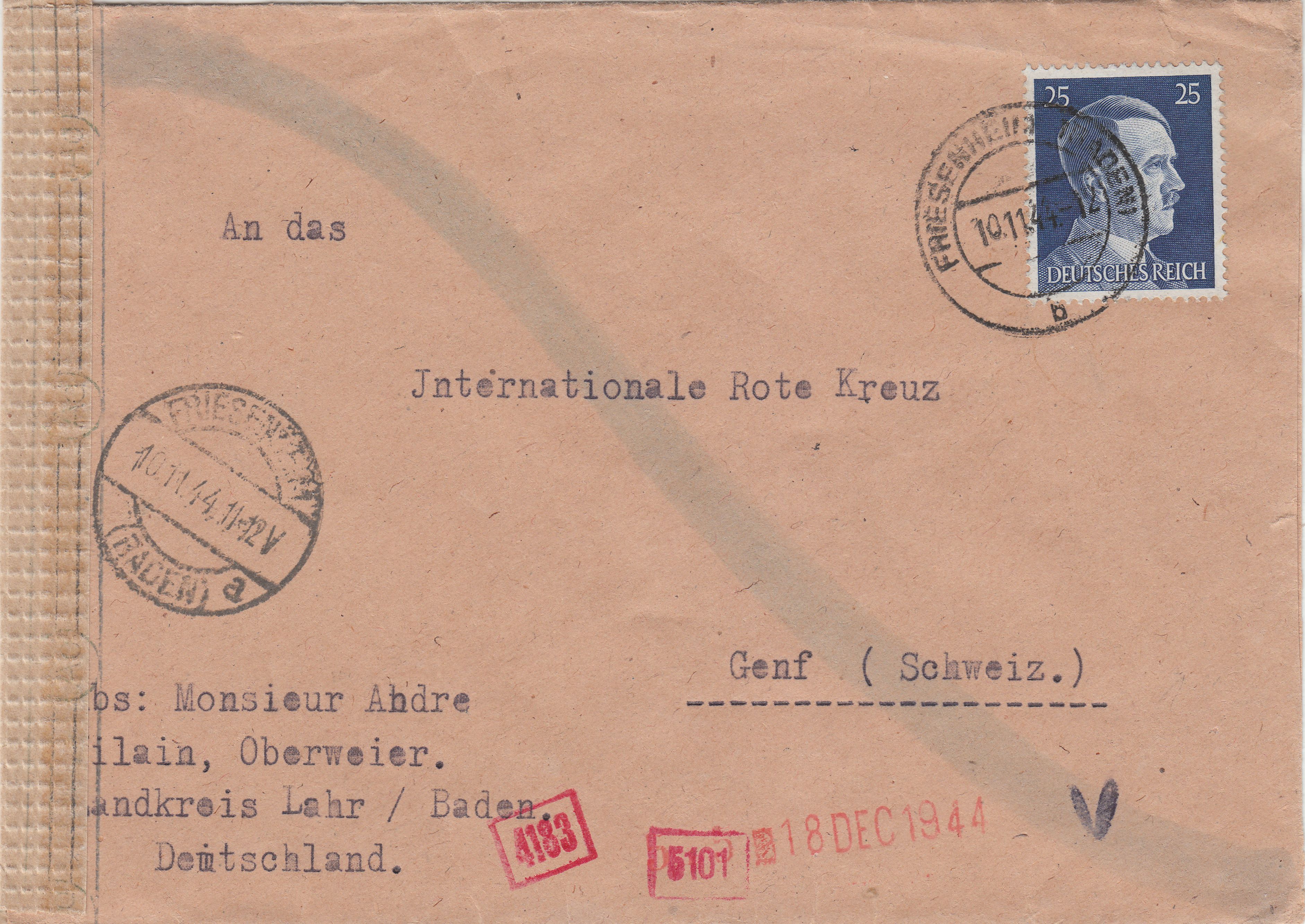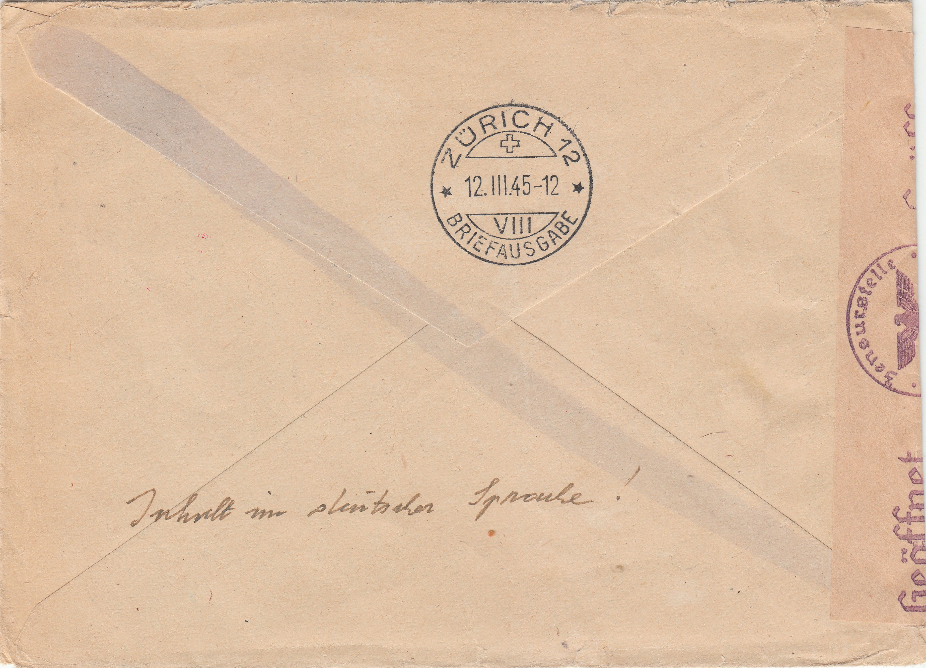 Am 15.12.1944 kam der Brief dann schließlich an seinem Bestimmungsort PFÄFFIKON (SCHWYZ) an, also einen geschlagenen Monat nach erfolgter erster Briefaufgabe!