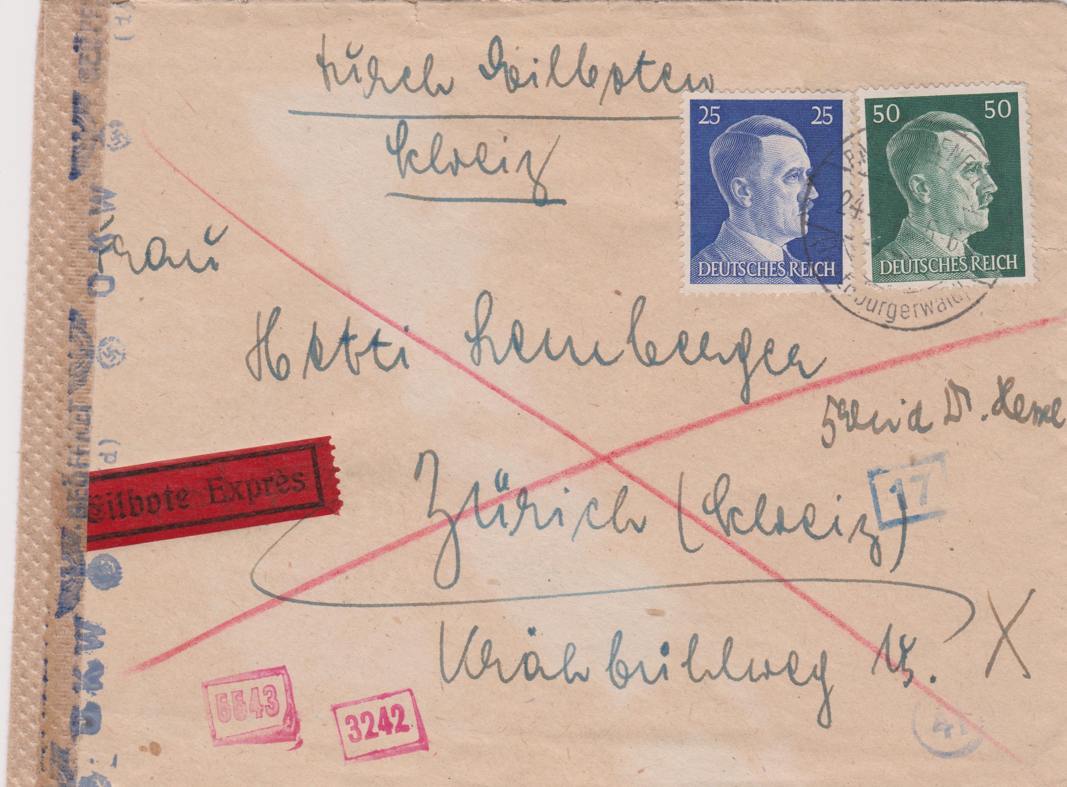 Dieser am 24.04.1943 in Bad Rothenfelde im Teutoburger Wald geschiebene und der Post übergebene Brief wurde nach Zürich adressiert: