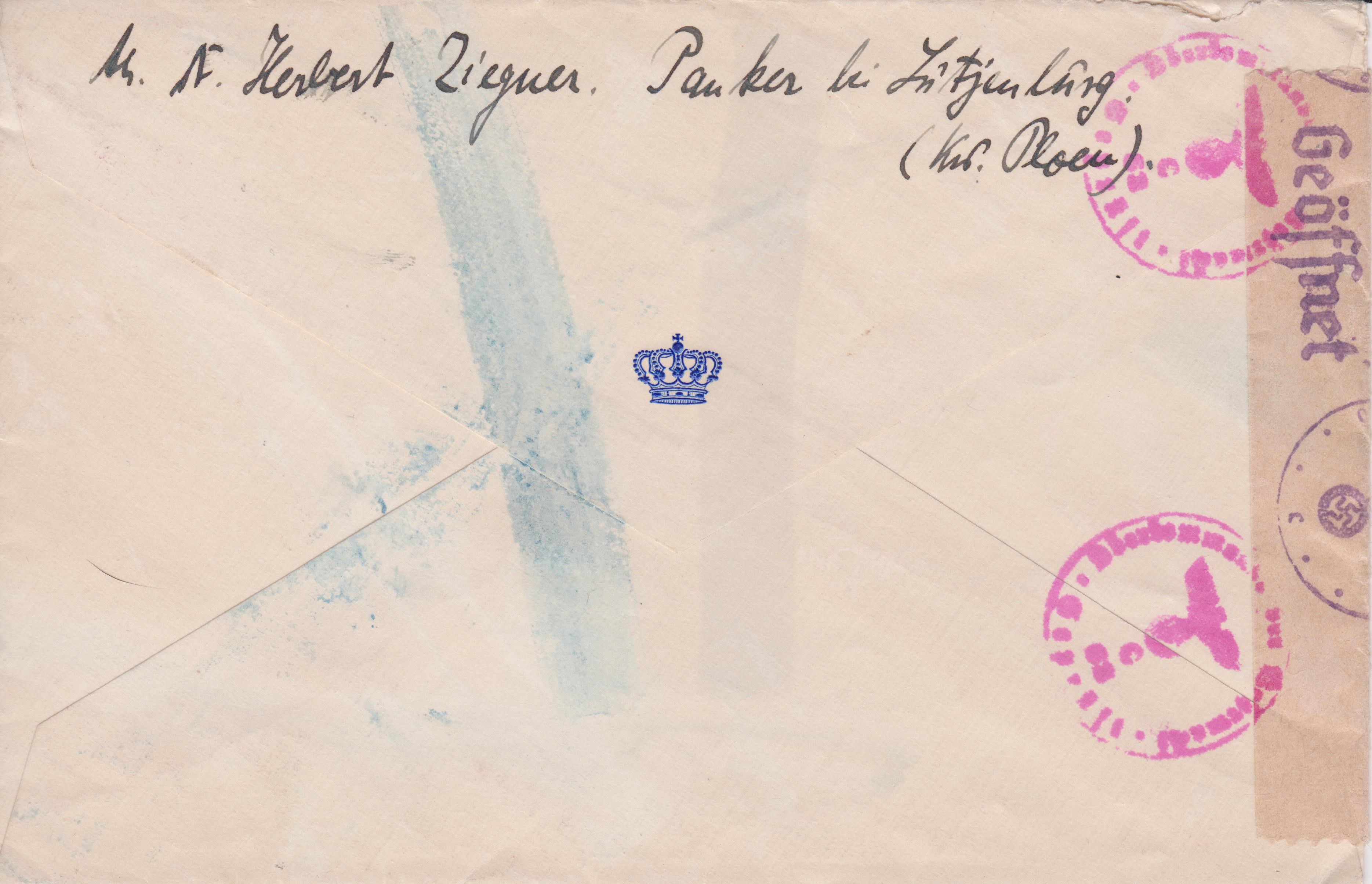 Der Beleg wurde der ABP Köln zugeleitet, wo vorderseitig ein Handprüfstempel "C 10" in Rot abgeschlagen wurde.
