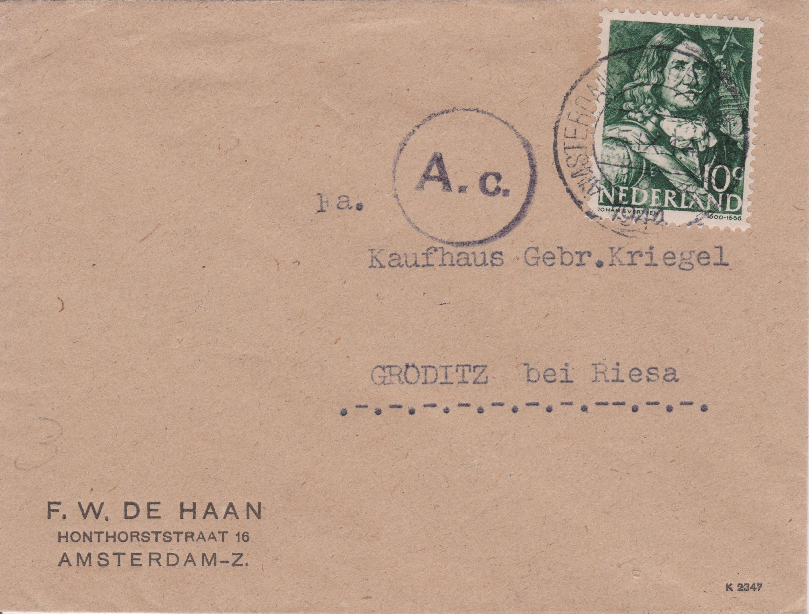 Dieses "BE" in Rot im Adressfeld stammt von der Eingangssortierung mit Hilfe einer TRANSORMA in Utrecht in Holland:
