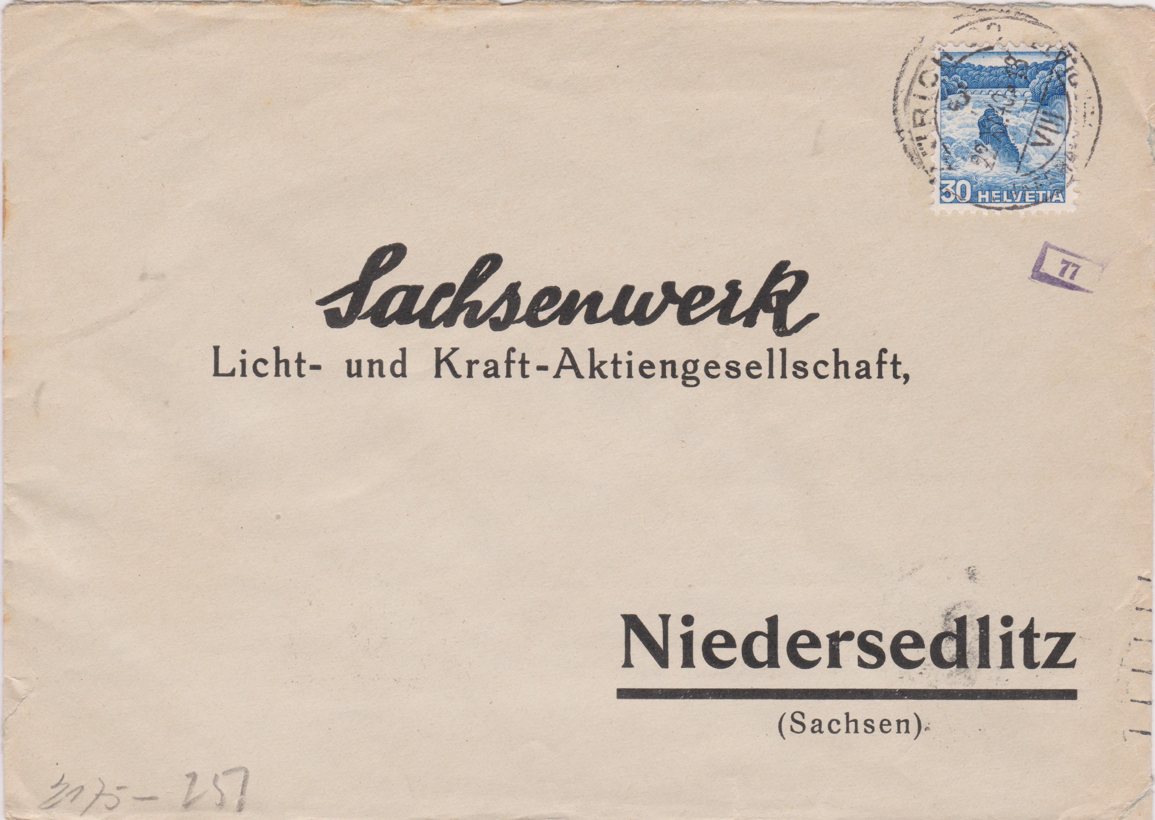 Brief aus ZÜRICH in der Schweiz, aufgegeben am 22.11.1940, adressiert nach "Niedersedlitz (Sachsen)":