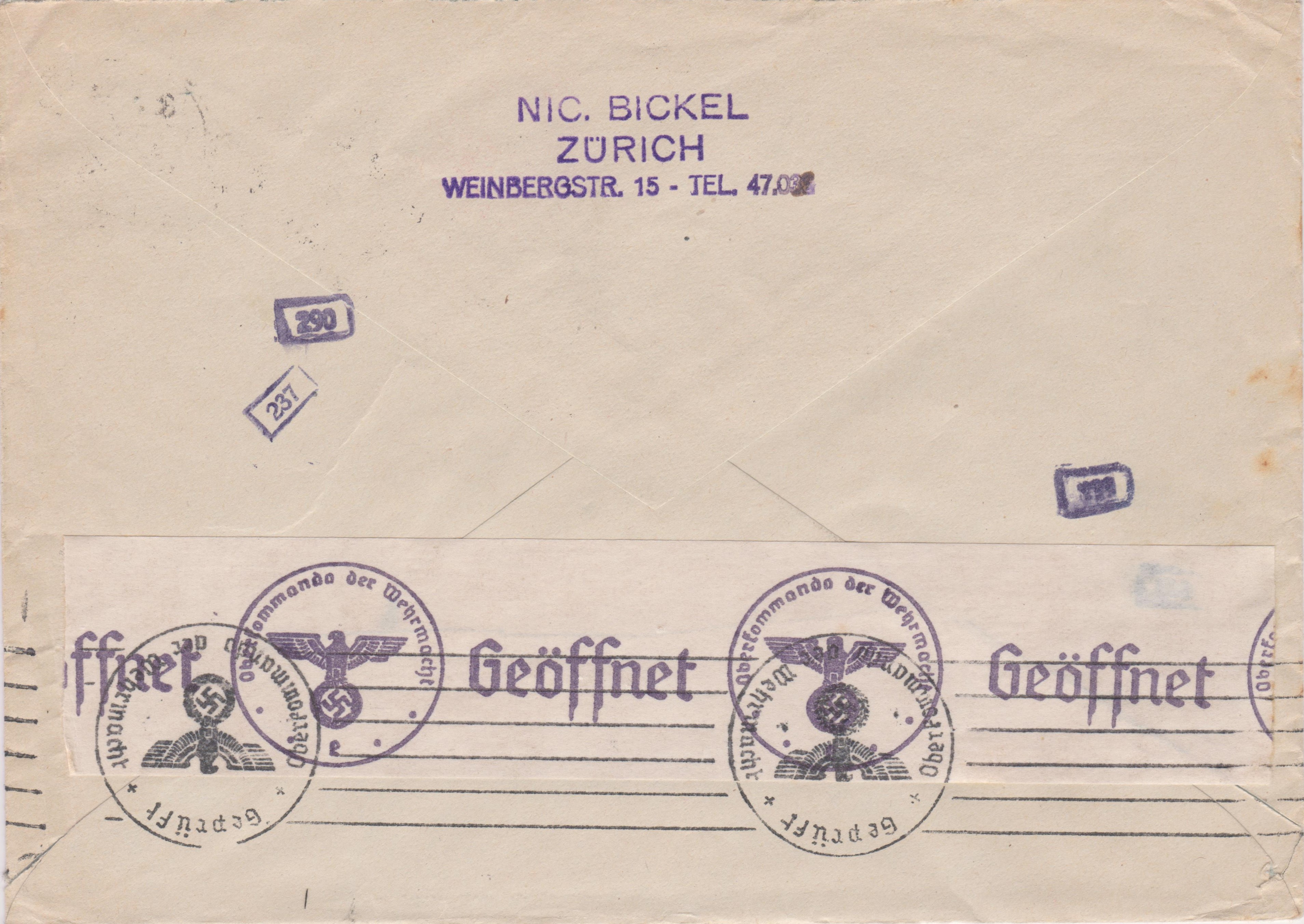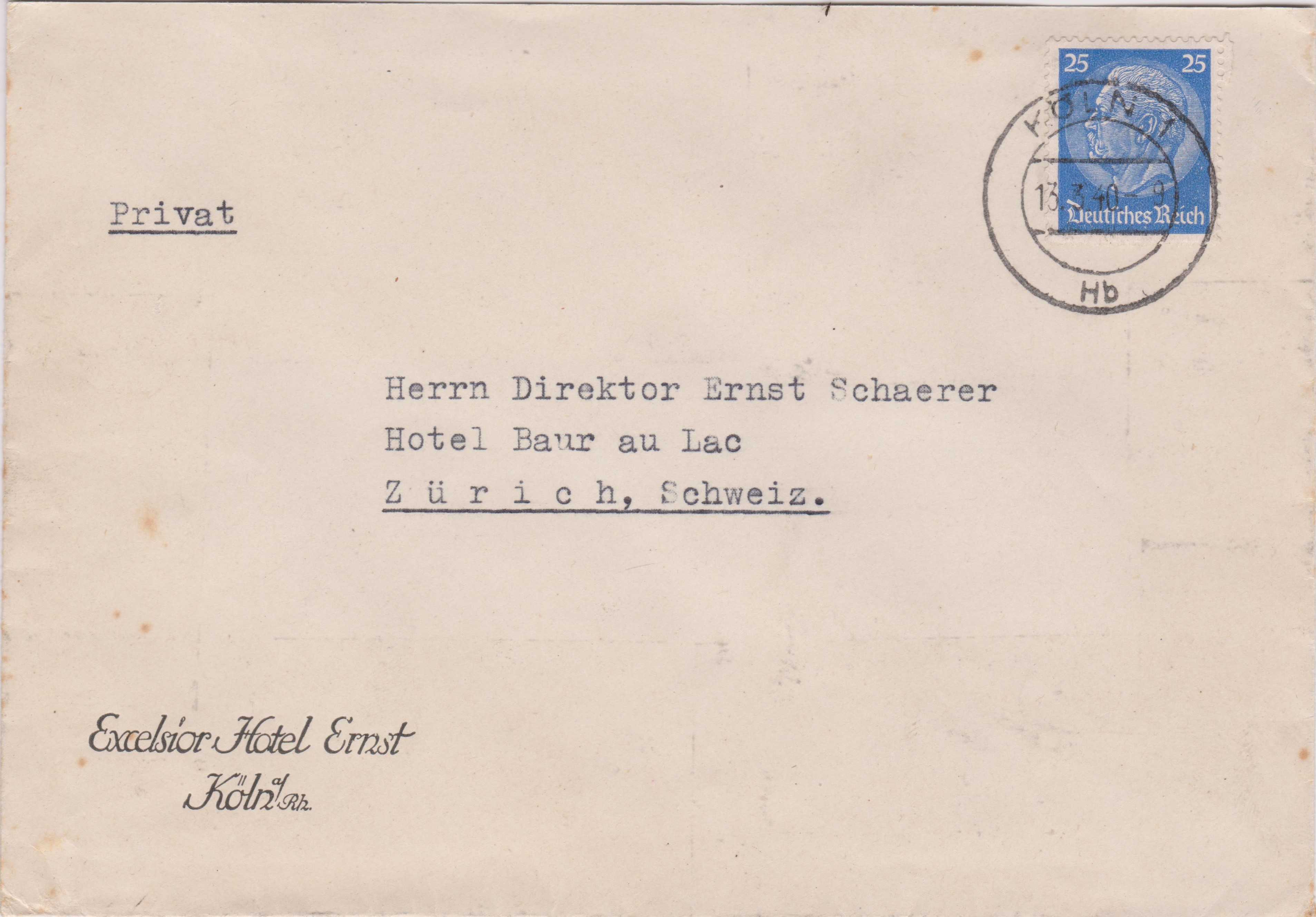 Brief nach Zürich, aufgegeben in KÖLN 1 am 13.03.1940:
