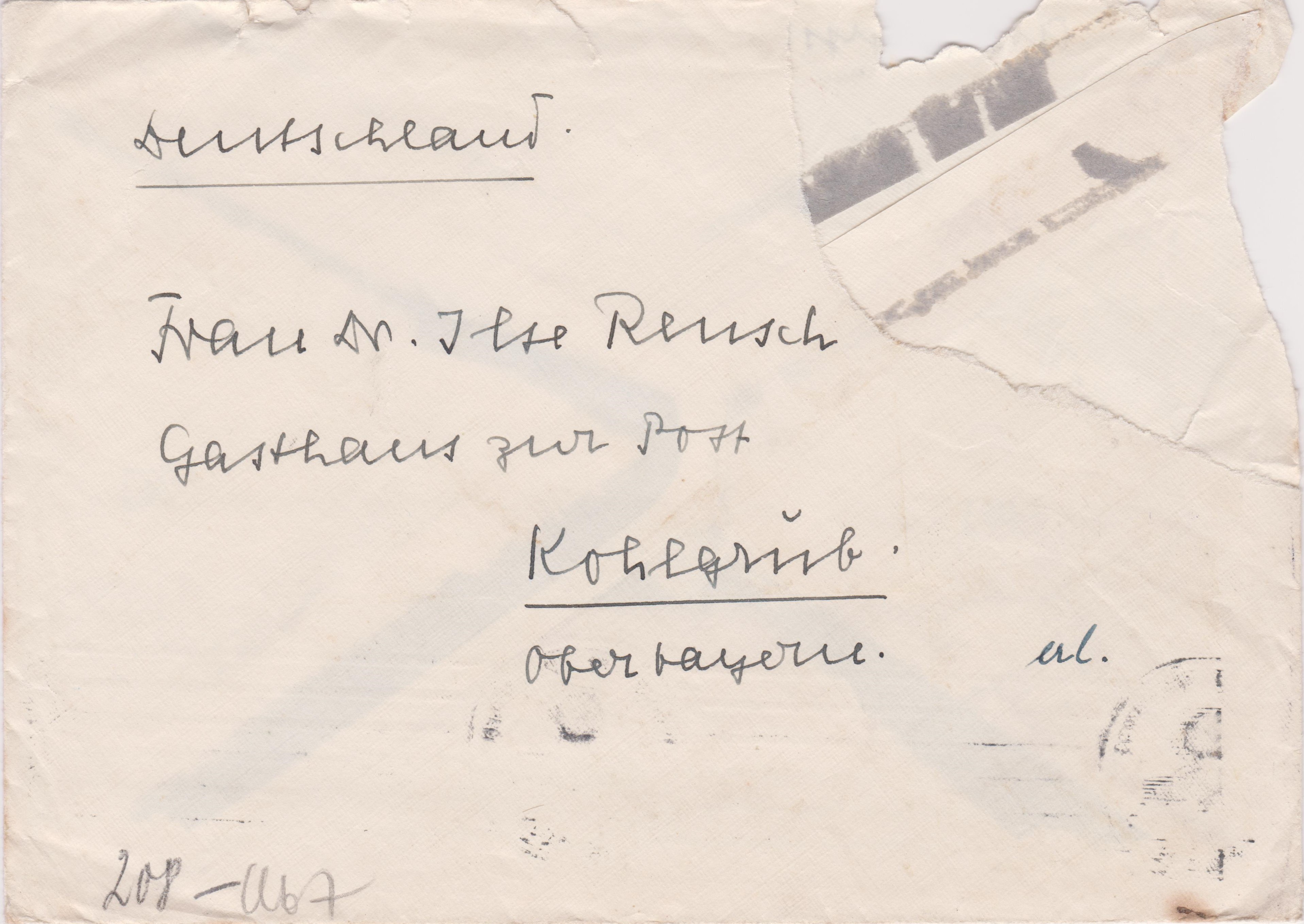 Die Frankatur aus der Schweiz wurde aus diesem Beleg leider von einem "Briefmarkensammler" ausgeschnitten!