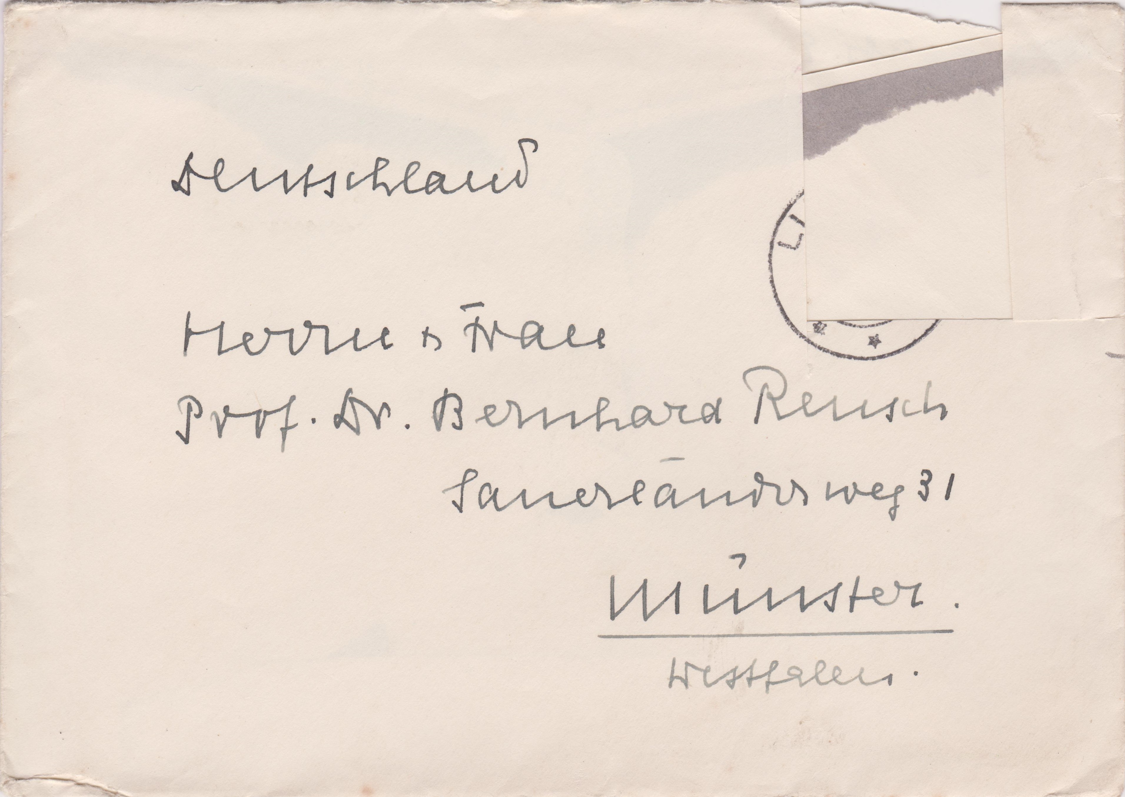 Brief nach "Münster Westfalen", aufgegeben in Liestal in der Schweiz: