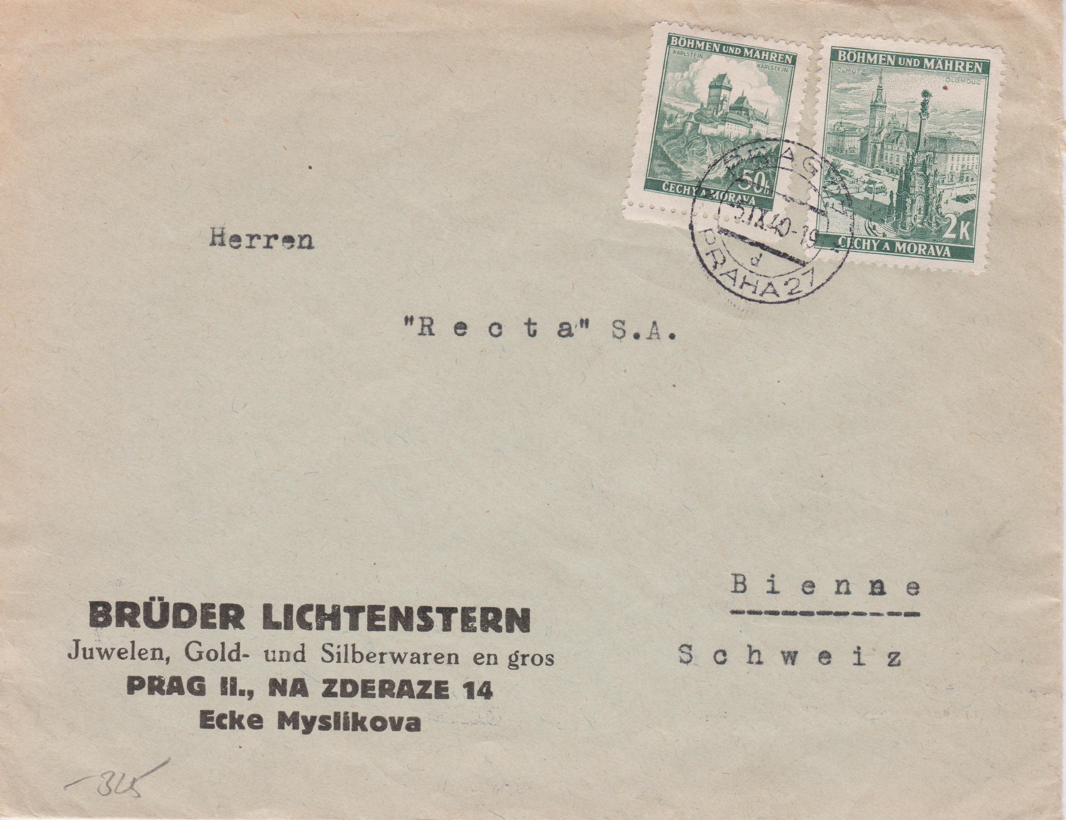 Brief in die Schweiz, aufgegeben am 05.09.1940 in Prag (= BÖHMEN UND MÄHREN):