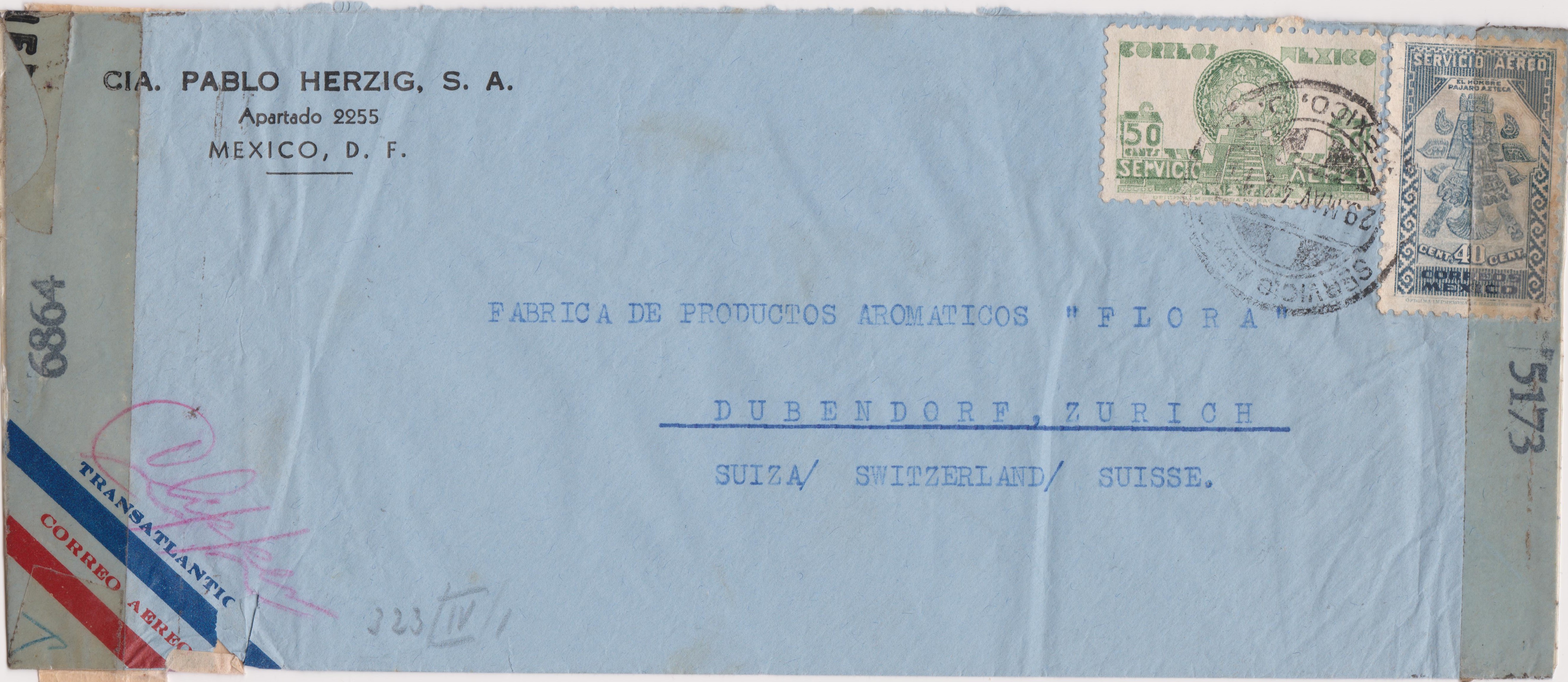 Dieser nach "DUBENDORF" bei Zürich in der Schweiz adressierte Luftpostbrief wurde in Mexico aufgegeben: