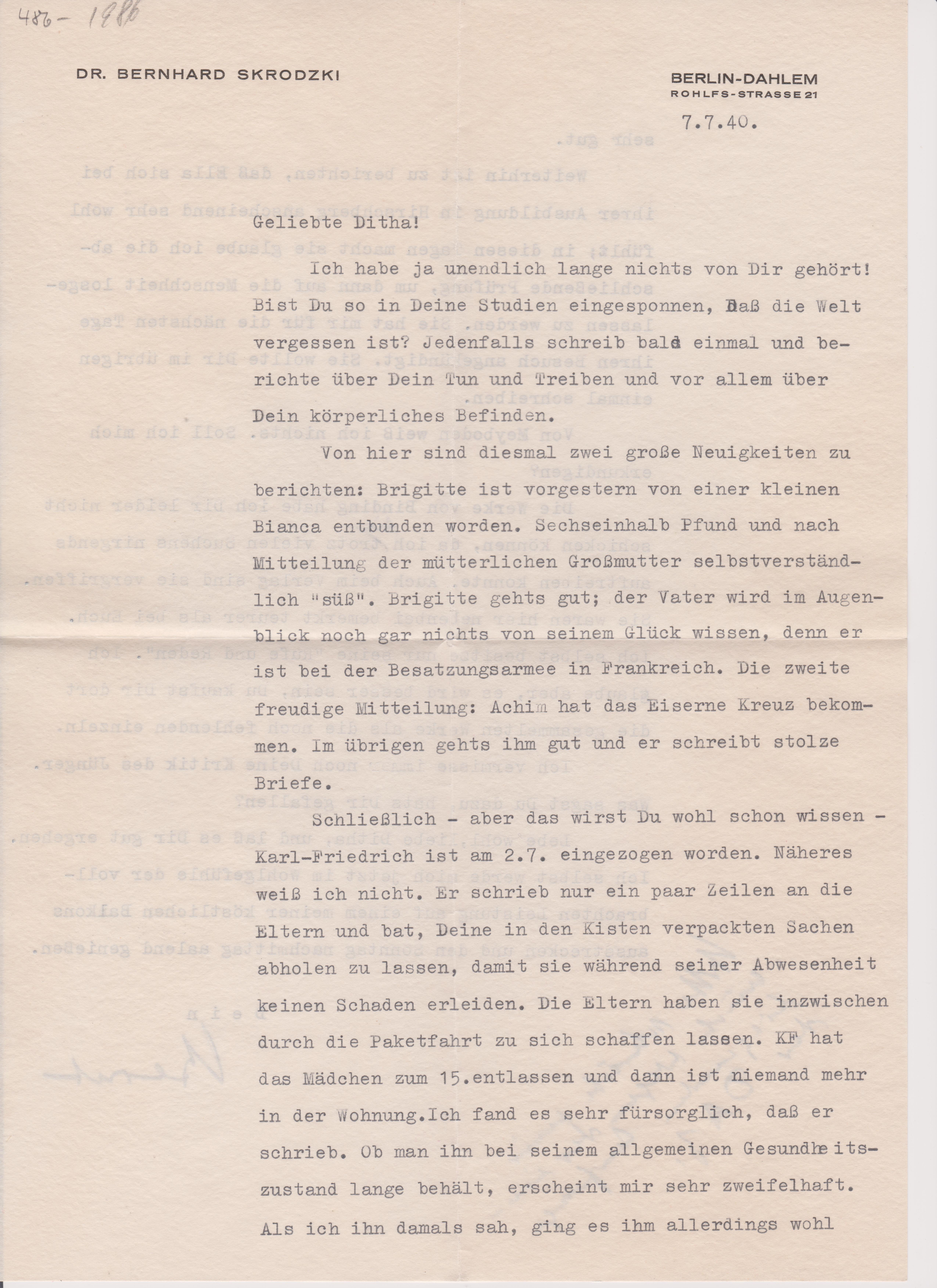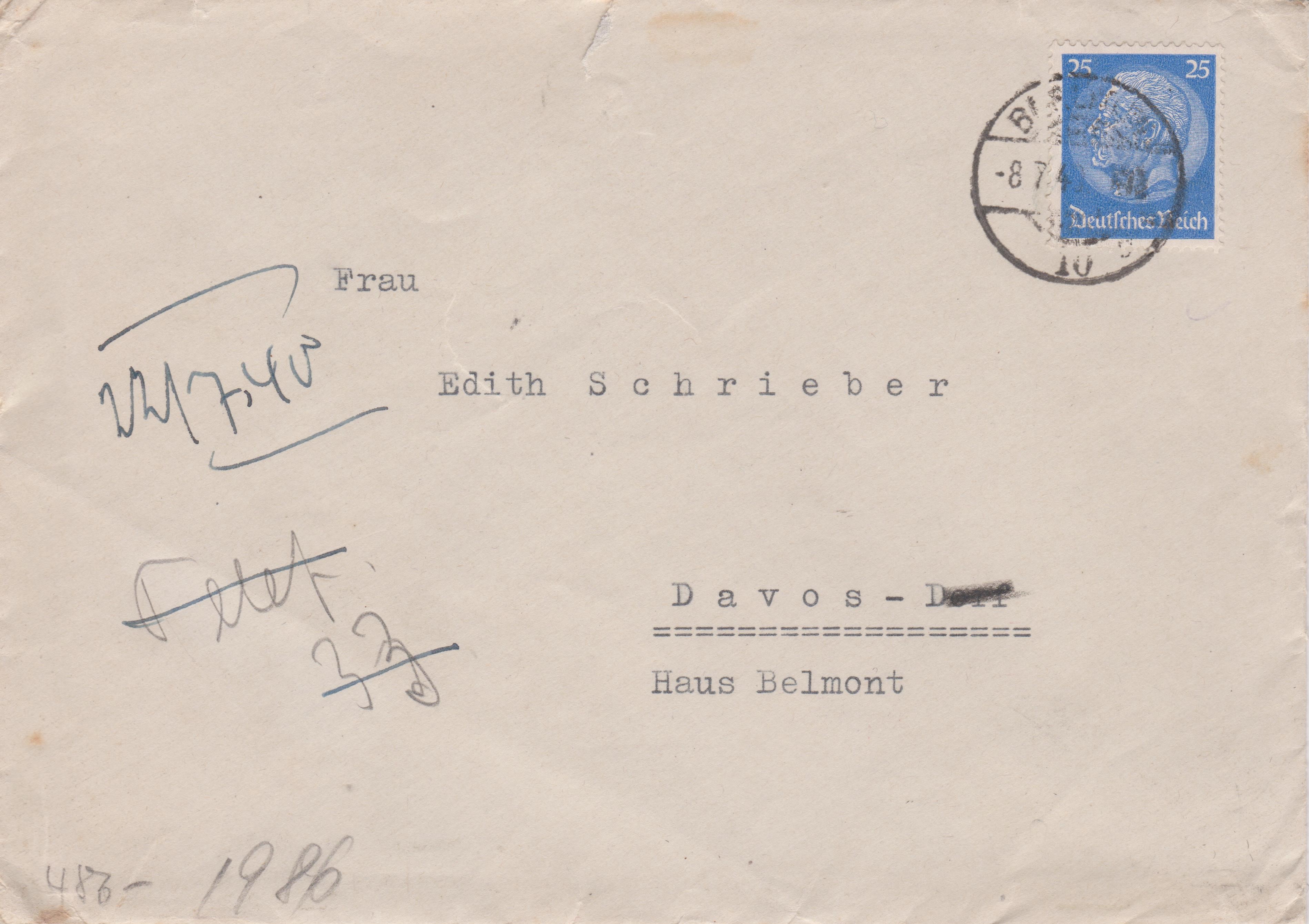 Brief nach Davos-Platz in der Schweiz, aufgegeben am 27.06.1940 in BERLIN-FRIEDENAU: