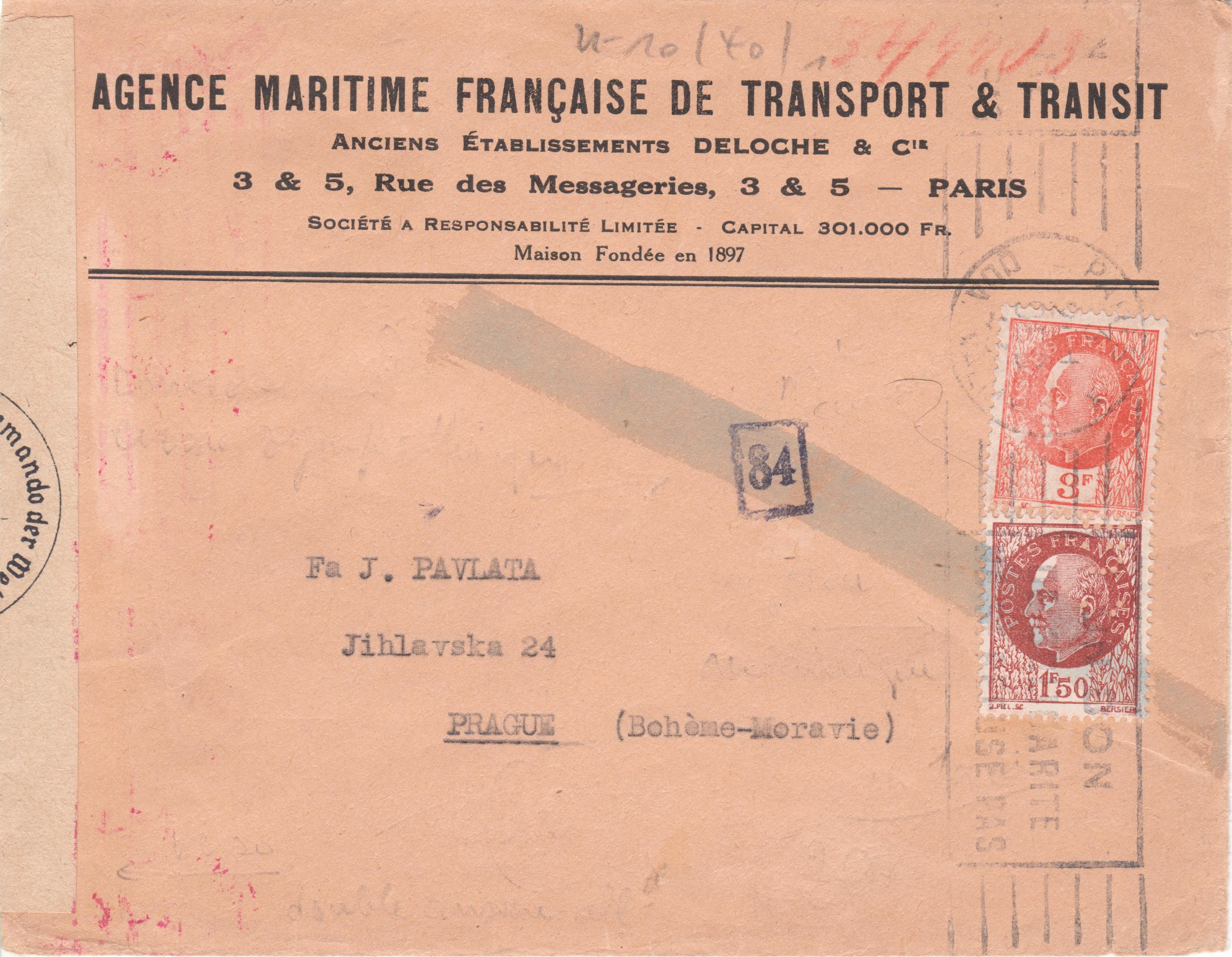 Hier ein 1943 in Paris aufgegebener Brief, adressiert nach PRAGUE (= Prag):