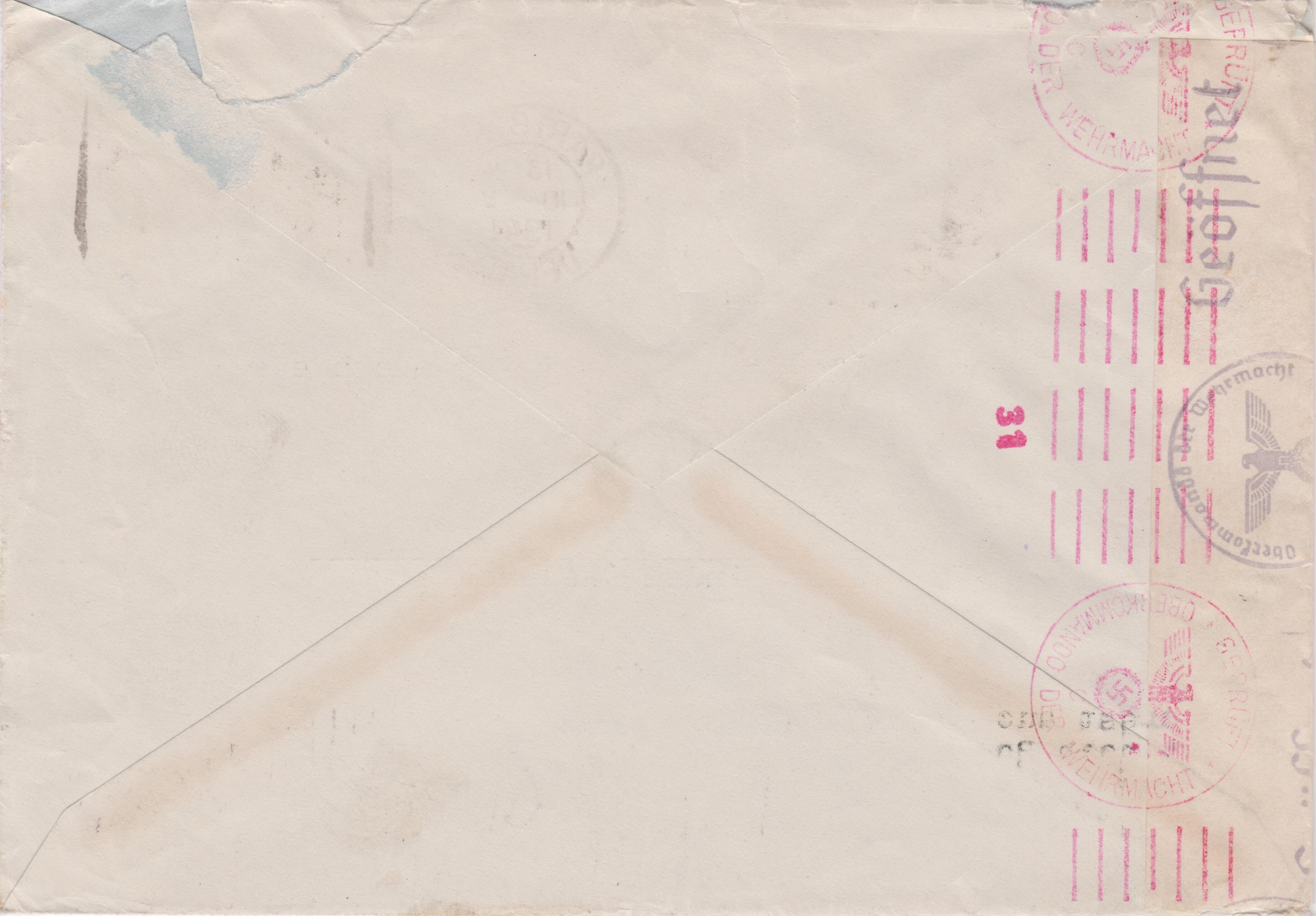 Im Vergleich zu verfügbaren Belegen aus den Niederlanden sowie Belgien durchliefen die Auslandsbriefprüfstelle Köln deutlich weniger Belege aus dem besetzten Frankreich!!!