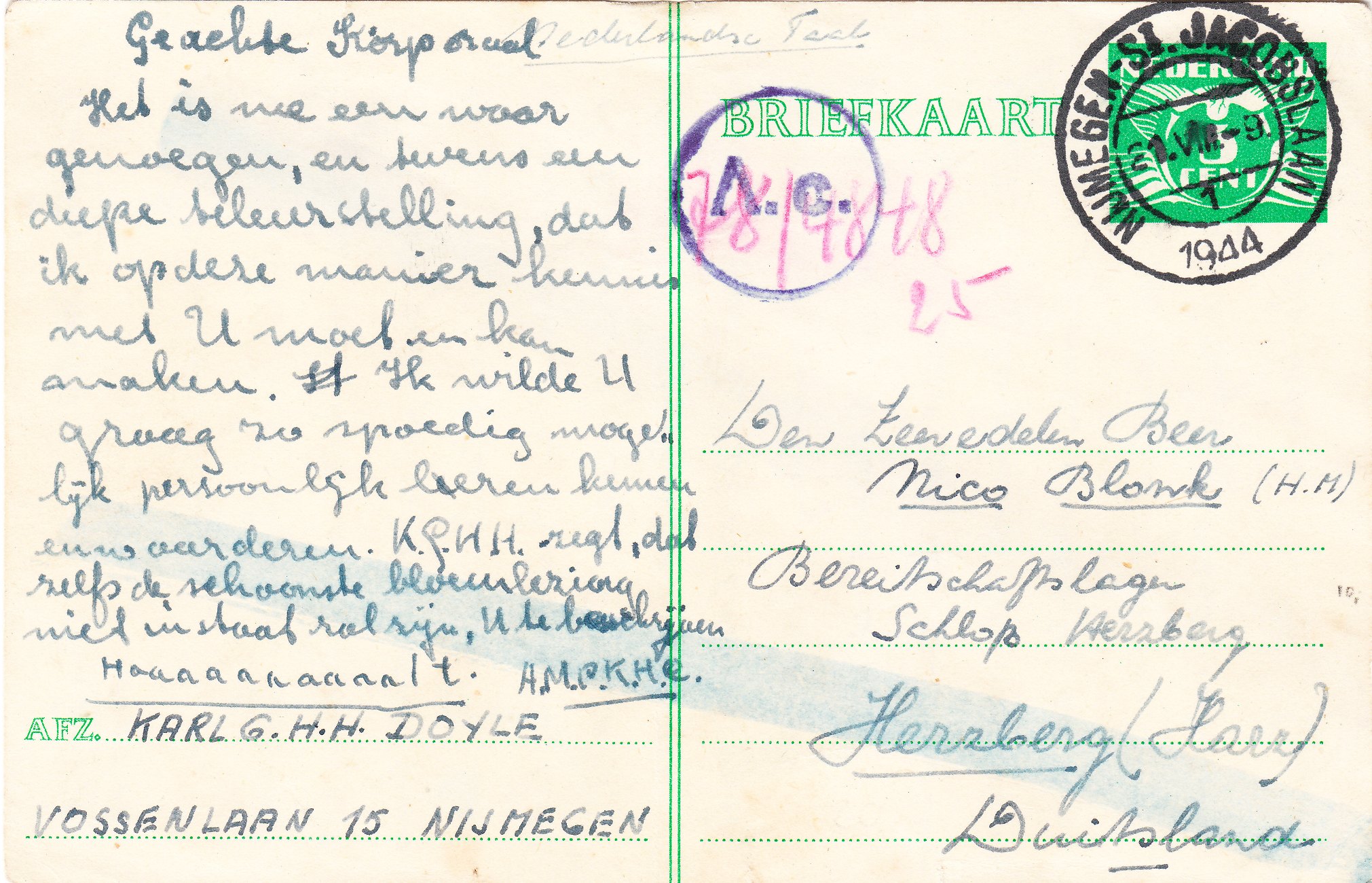 In Holland erfolgte eine recht selten zu findende TRANSORMA-Codierung "AK". In den Niederlanden wurden insgesamt 20 Transorma-Sortiermaschinen in Betrieb genommen. Dieser nach Bilthoven adressierte Beleg erhielt seine Transorma-Codierung in Utrecht, da Bilthoven in der Provinz Utrecht liegt und Utrecht die Operatorkennungen "AA" bis "BL" benutzte. Es handelte sich somit in diesem Falle um eine Eingangscodierung per TRANSORMA!