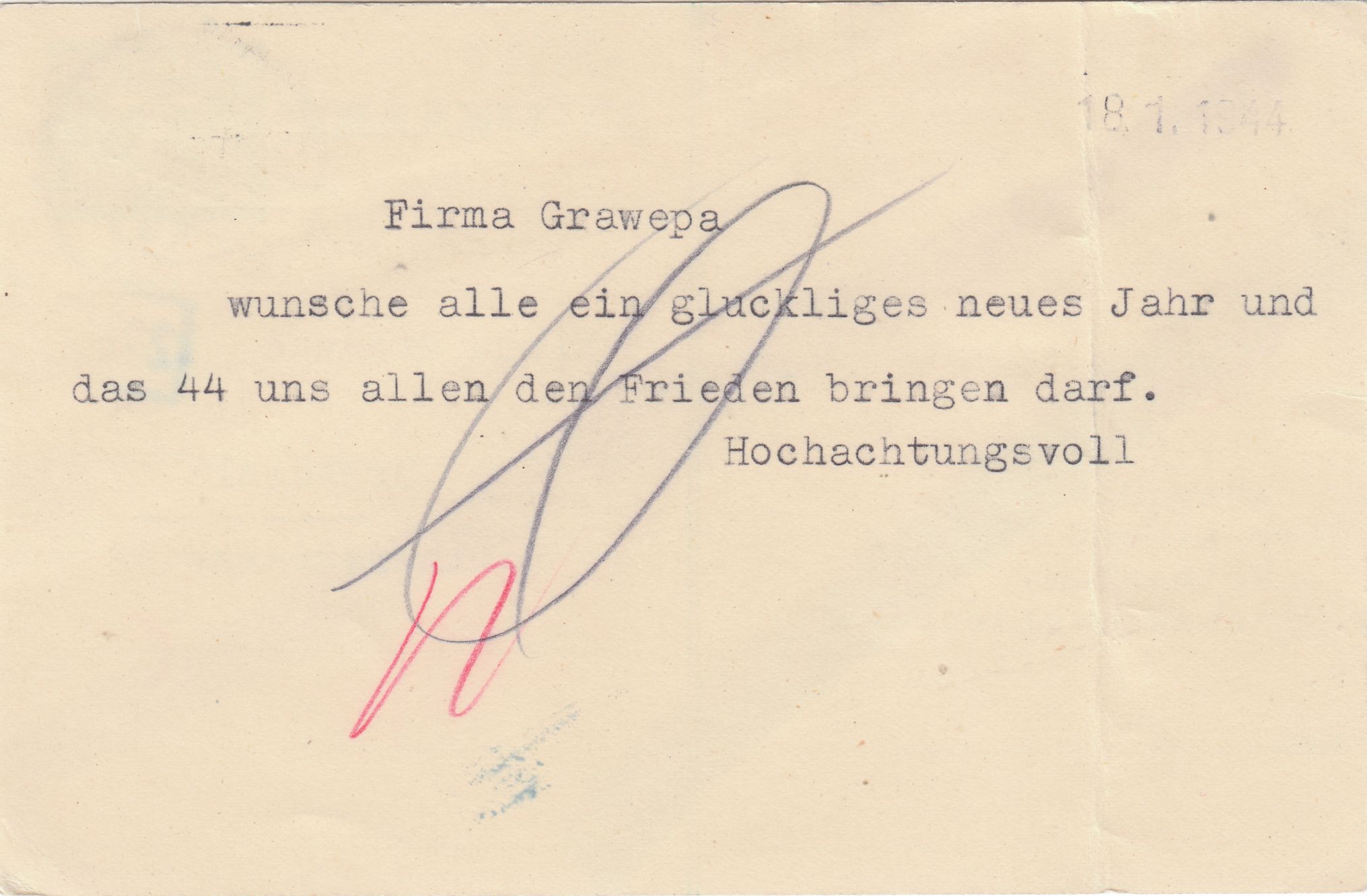 Der Empfänger vermerkte oben links mit Bleistift, dass er diese Sendung am 12.02.1944 erhalten hat.